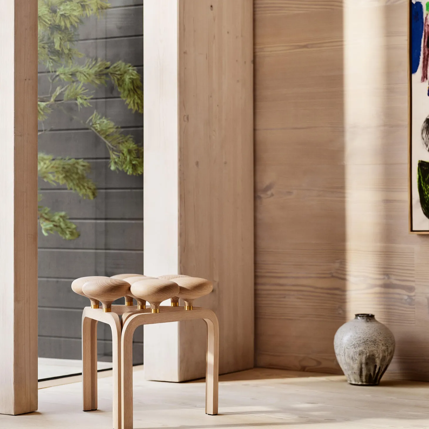 Utzon-skamlen af arkitekt Jørn Utzon har et fængende og skulpturelt udtryk. Den blev designet i samme periode som Sydney Opera House og er en funktionel, dekorativ og komfortabel tilføjelse til indretningen. Utzon-taburetten er fremstillet i oliebehandlet birk og birkefiner med smukke messingdetaljer. Designet er unikt og udstråler masser af sjæl og energi.