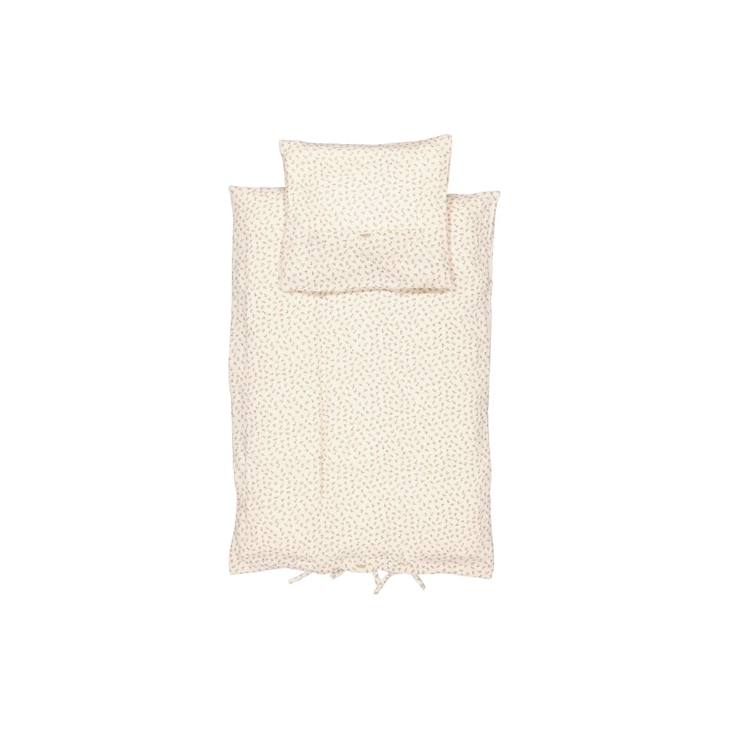 Sengetøj med betræk til dyne og hovedpude i bæk og bølge. Dynebetrækket lukkes med bindebånd i fodenden.