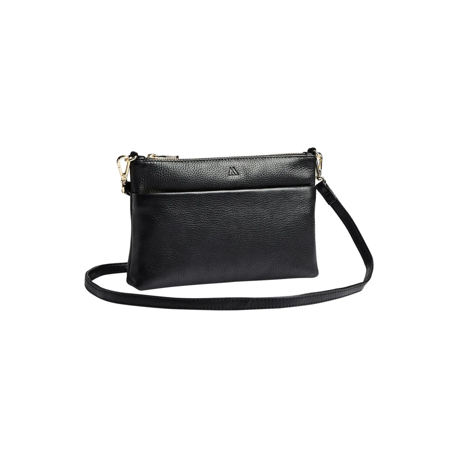 Karima Crossbody bag fra Markberg er en fin taske. Den er lavet af kalveskind, hvilket giver den et eksklusivt udseende og en blød fornemmelse. Med lynlåslommen på fronten er den ideel til opbevaring af småting, som man gerne vil have hurtigt adgang til. Det store rum indeni giver god plads til det, man måtte have brug for til hverdag, mens lynlås-lukningen sikrer sikkerhed for indholdet. Den justerbare og aftagelige læderstrop gør det muligt at tilpasse tasken til ens personlige stil og præferencer, så man kan bære den som man ønsker. Taskens indvendige for i 100% bomuld tilføjer komfort og holdbarhed, og de kompakte mål 16 cm x 24 cm x 3 cm, gør den praktisk at have med sig uden at være for voluminøs.