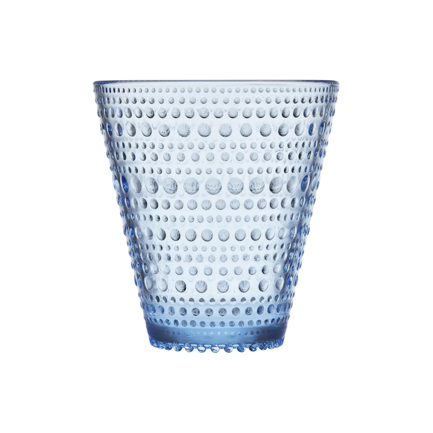 The groundbreaking raised droplet design of Kastehelmi came from legendary Finnish designer Oiva Toikka’s search to find a way to hide joint marks in glass. Kastehelmi (Finnish for “dewdrop”) features rings of glass bubbles that resemble strings of dewdrops glistening under the morning sun. The beloved Kastehelmi collection offers a wide range of playful pieces that are both functional and decorative. Each distinct, versatile piece plays with light, bringing out the reflective beauty of the glass. The Kastehelmi tumbler is a classic example of Finnish glassware. Delicate yet durable drinkware that suits any table setting. Vibrant aqua brings contemporary sophistication. Available in many colours inspired by nature. Dishwasher safe.