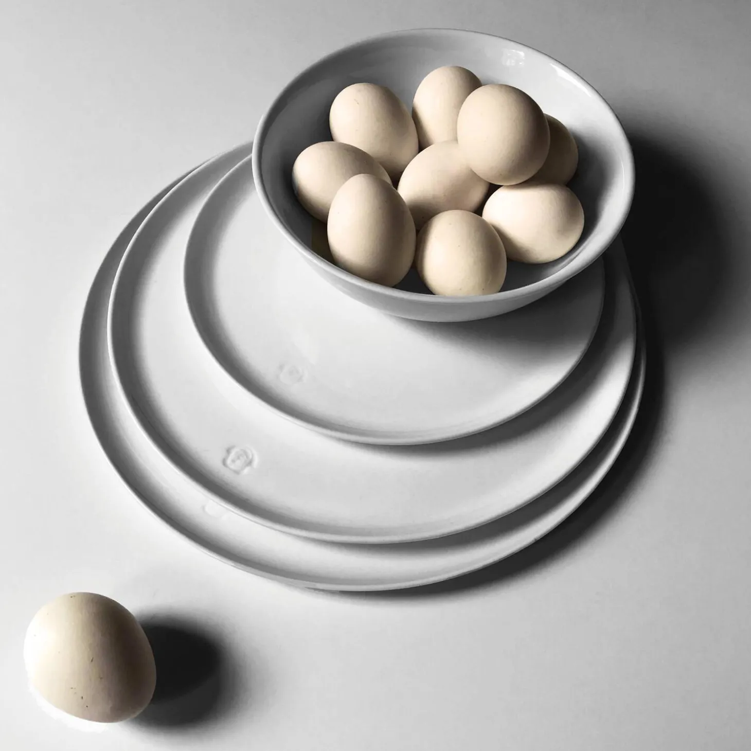 Kay Bojesen var sølvsmed – udlært af Georg Jensen – og en af sin tids mest innovative designere. Han var altid på jagt efter nye materialer, der kunne gøre det muligt for flere at eje hans enkle og funktionalistiske design. I Kay Bojesens ånd blev der derfor i 2017 lanceret en porcelænsserie af fade og skåle med afsæt i hans designs i sølv. En sølvbakke, udført i Kay Bojesens københavnske smedje i 1930erne, er udgangspunktet for formgivningen af en serie af fire tallerkner. De er fremstillet i samme hvide håndglaserede porcelæn, som resten af KAY- serien, og passer smukt ind i den moderne borddækning. Tallerknen, der måler 29 cm, er den største af de to middagstallerkner. Flot i sig selv eller som undertallerken til en mindre tallerken eller skål. Denne tallerken er, med sin store størrelse, også det perfekte lagkagefad. Tallerknerne tåler at komme i opvaskemaskinen.