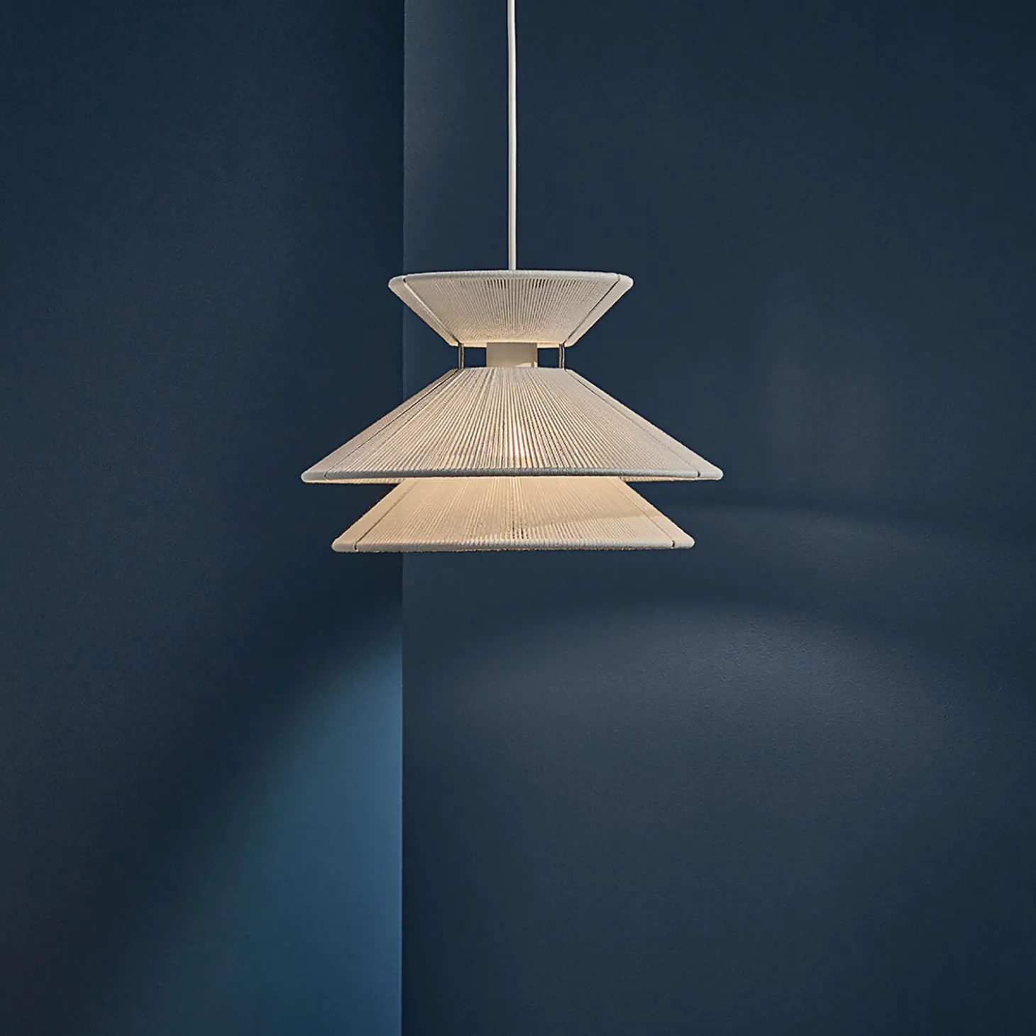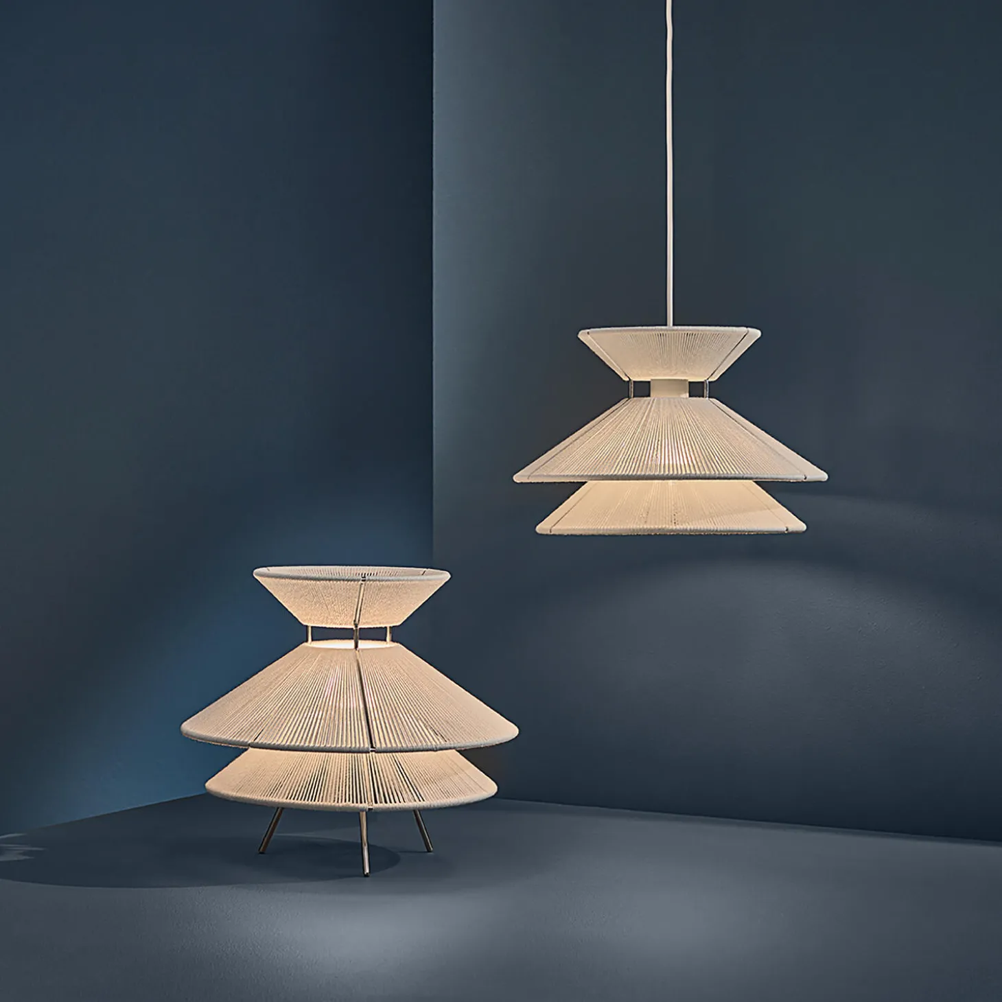 Kiku is an elegant lamp designed with a focus on clean lines and balance, giving a soft and functional light. Kiku draws inspiration from Japanese forms and materials. Its shape is inspired by the design of traditional Japanese samurai hats. Available in both pendant and table variations, Kiku is produced from stainless steel and linen strings. The luminaire serves as a tribute to the simplicity and harmony which characterises Japanese design.