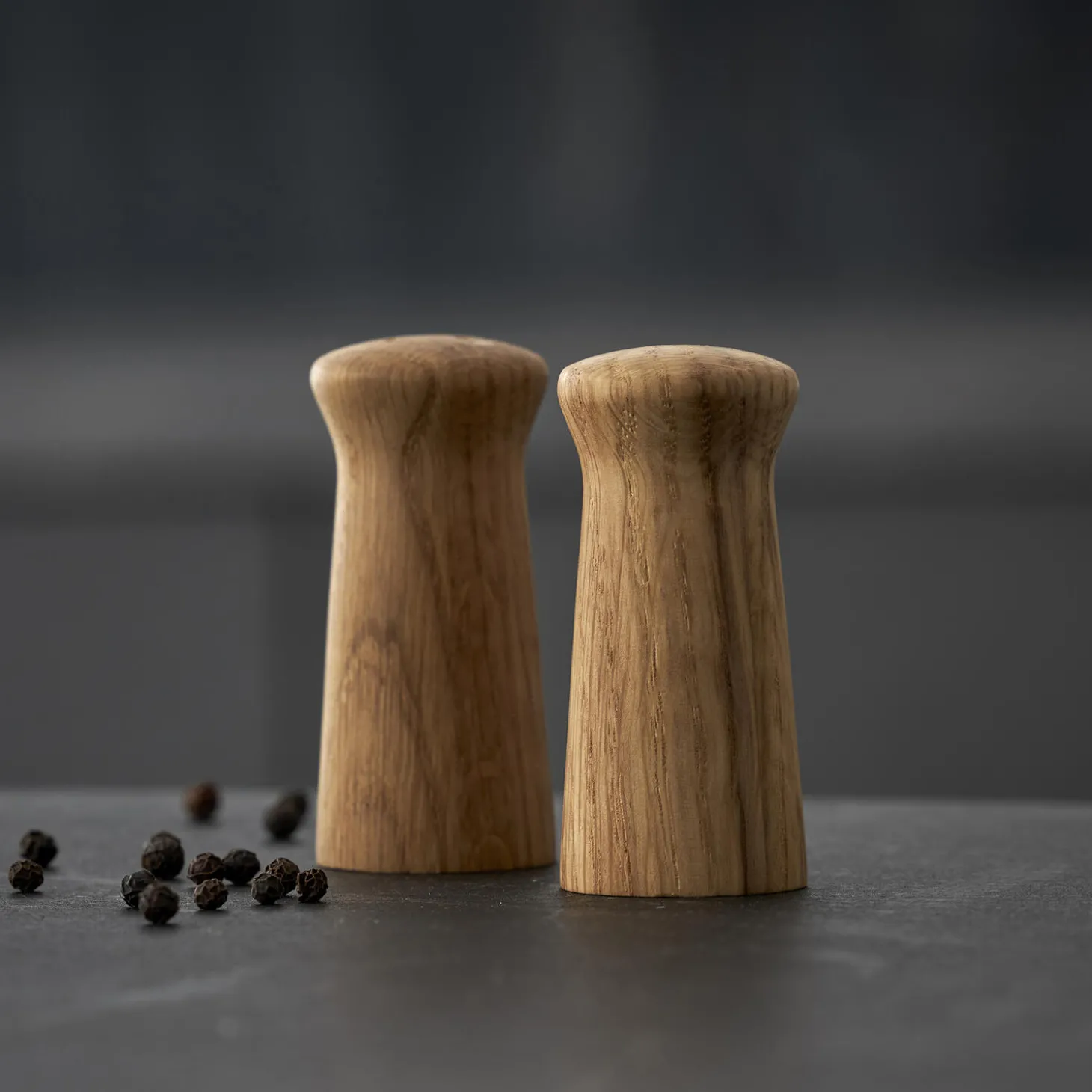 Dekorativt salt og peber strøsæt af egetræ. Eg er en smuk, varm og modstandsdygtig træsort, der kan holde i mange år og bliver smukkere med tiden. Kan bruges både i køkkenet og på spisebordet. Højde: 7 cm. Varen er produceret i FSC®-certificeret egetræ (FSC-C166612).