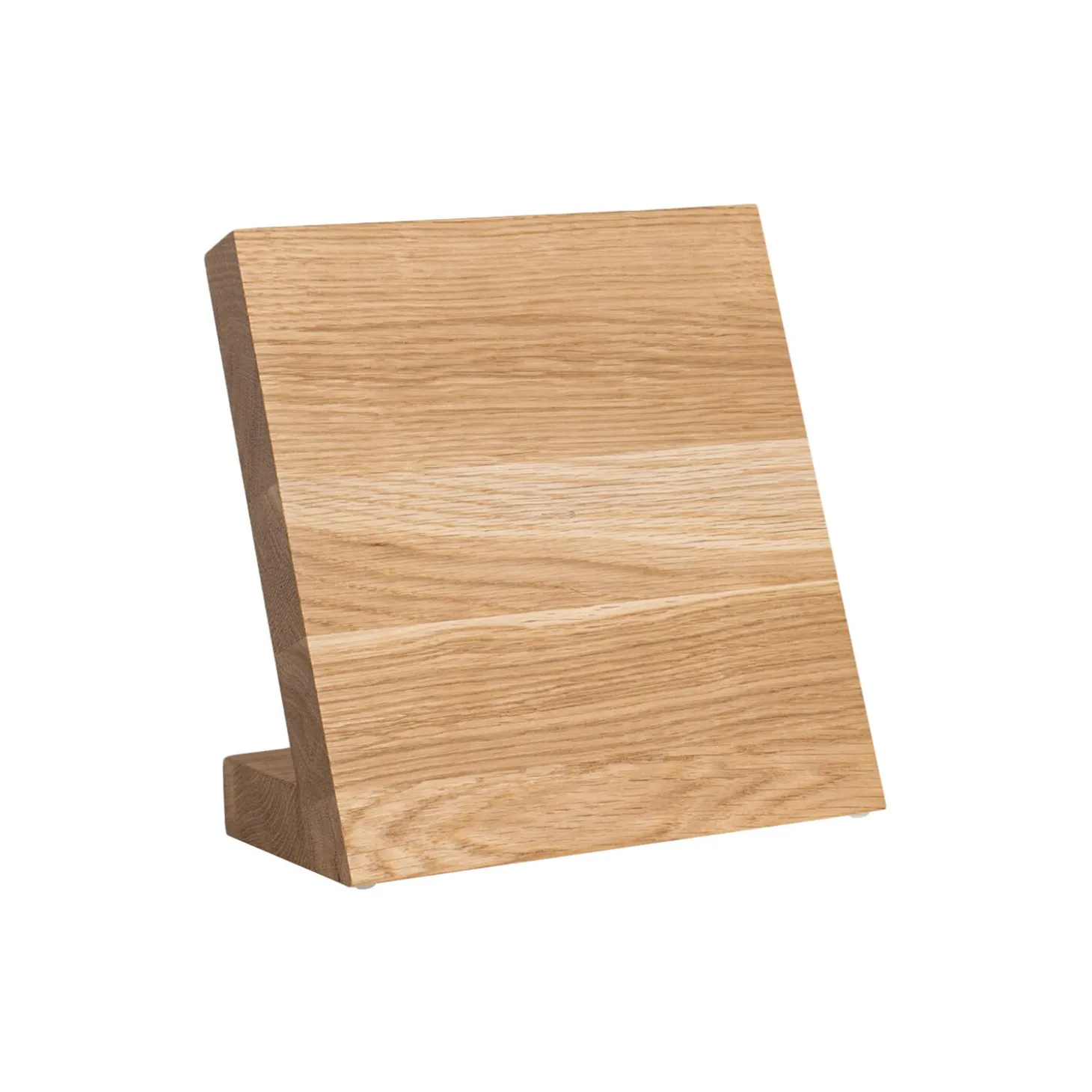 Gem ikke dine køkkenknive væk i en skuffe, hvor de kan få slag og ridser – vis dem i stedet frem på en knivblok i egetræ, der både er en skånsom og smuk opbevaringsløsning. Knivblokken indeholder stærke neodymmagneter, så du ikke skal bekymre dig om knive, der falder af. Med plads til fire køkkenknive har du alle de mest essentielle knive lige ved hånden, så du kan klare enhver skæreopgave. Knivblokken er produceret i europæisk FSC-certificeret egetræ. Udover at være en smuk tilføjelse til køkkenbordet er knivblokken også et hygiejnisk valg, da træet er naturligt antibakterielt, og så har den desuden skridsikre gummifødder. Knivblokken kræver ingen montering: Sæt den frem, placer knivene og nyd synet.
