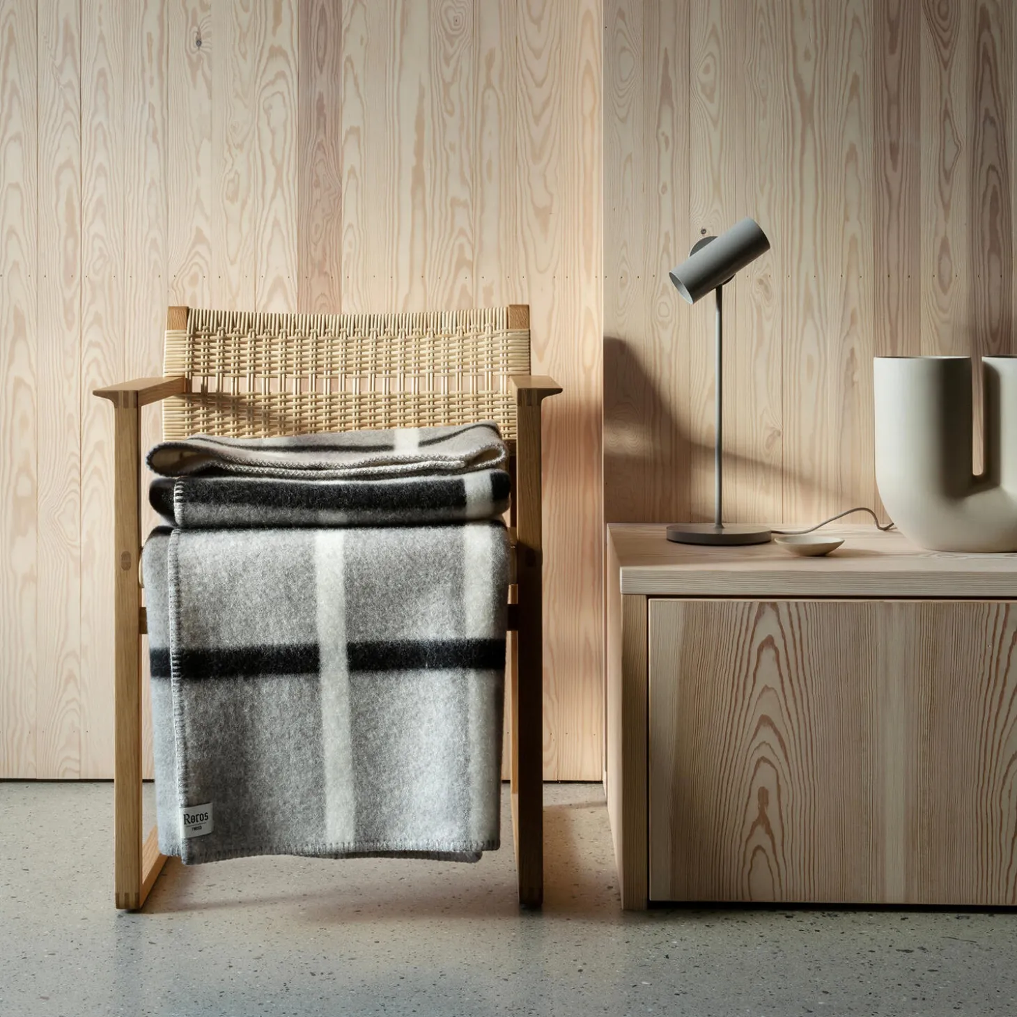 The Knut series draws inspiration from the most elementary process in weaving, the actual binding of the vertical and horizontal threads. The pattern is a tight and precise grid, drawn in saturated colours.