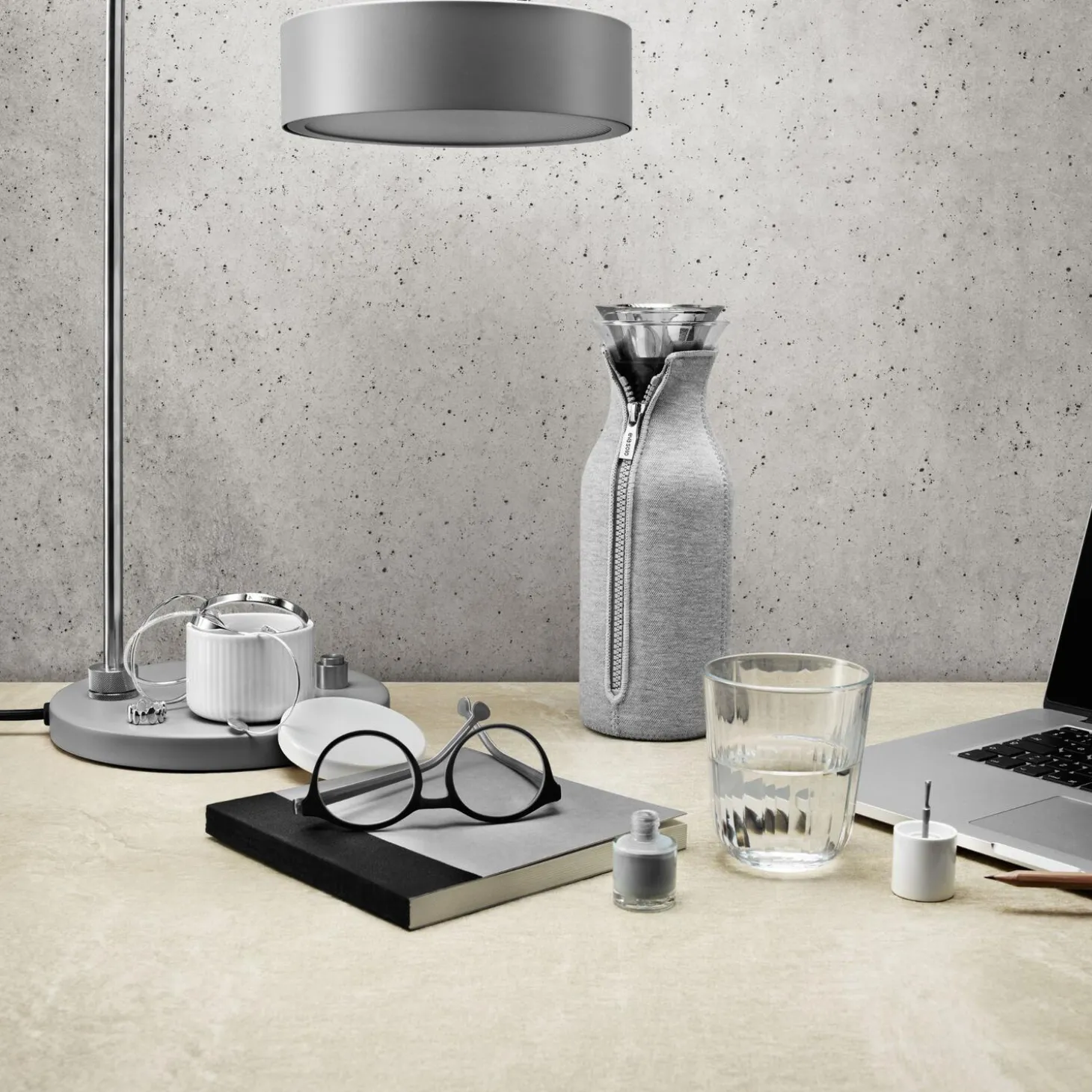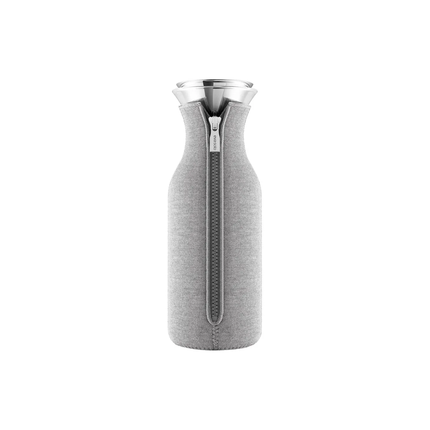 Karaflen passer i de fleste køleskabslåger. Den er velegnet til kolde såvel som varme drikke. Praktisk hældekant i rustfrit stål og silikone sikrer, at karaflen er 100 % drypfri – indholdet ender i glasset og ikke på dugen. Det medfølgende vippelåg åbner automatisk, når du hælder. Dragten sørger for, at indholdet i karaflen holdes varmt eller koldt længere og sikrer, at der ikke kommer kondensvand på bordet. Dragten er lavet af neopren med en yderside af vævet tekstil med struktur. Glas og metaldele tåler masakinopvask. Dragten tåler maskinvask på 30 grader.