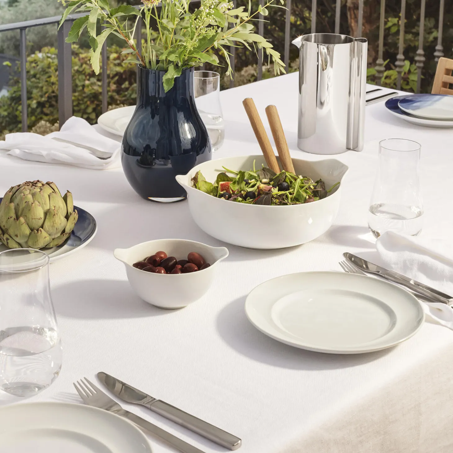 Denne enkle, elegante og funktionelle frokosttallerken i hvidt porcelæn blev første gang designet i 1960’erne af den anerkendte designer Henning Koppel, som samarbejdede med Georg Jensen gennem mange år. Tallerkenen er en del af et elegant service sæt, som var Henning Koppel’s første design i porcelæn. Nu vækket til live igen af Georg Jensen med sine originale smukke harmoniske linjer. Frokosttallerkenen er ideel til hverdagens måltider og giver borddækningen et strejf af elegance.