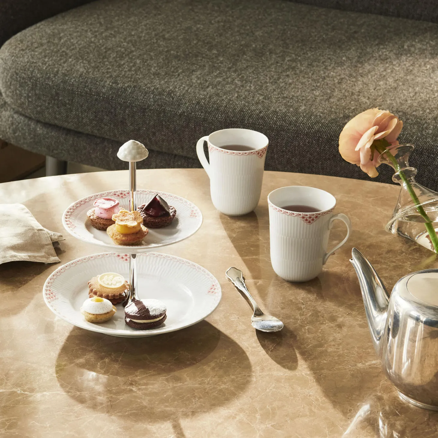 Disse to elegante Koral Riflet Blonde krus på 33 cl er ideelle både som tekopper og kaffekopper. De populære krus er dekorerede med det fine mønster fra Koral Riflet Blonde; et mønster, der smukt forener Royal Copenhagens klassiske dekoration fra Musselmalet Halvblonde med en ny, livlig farve. Et perfekt sæt til et fælles øjeblik.