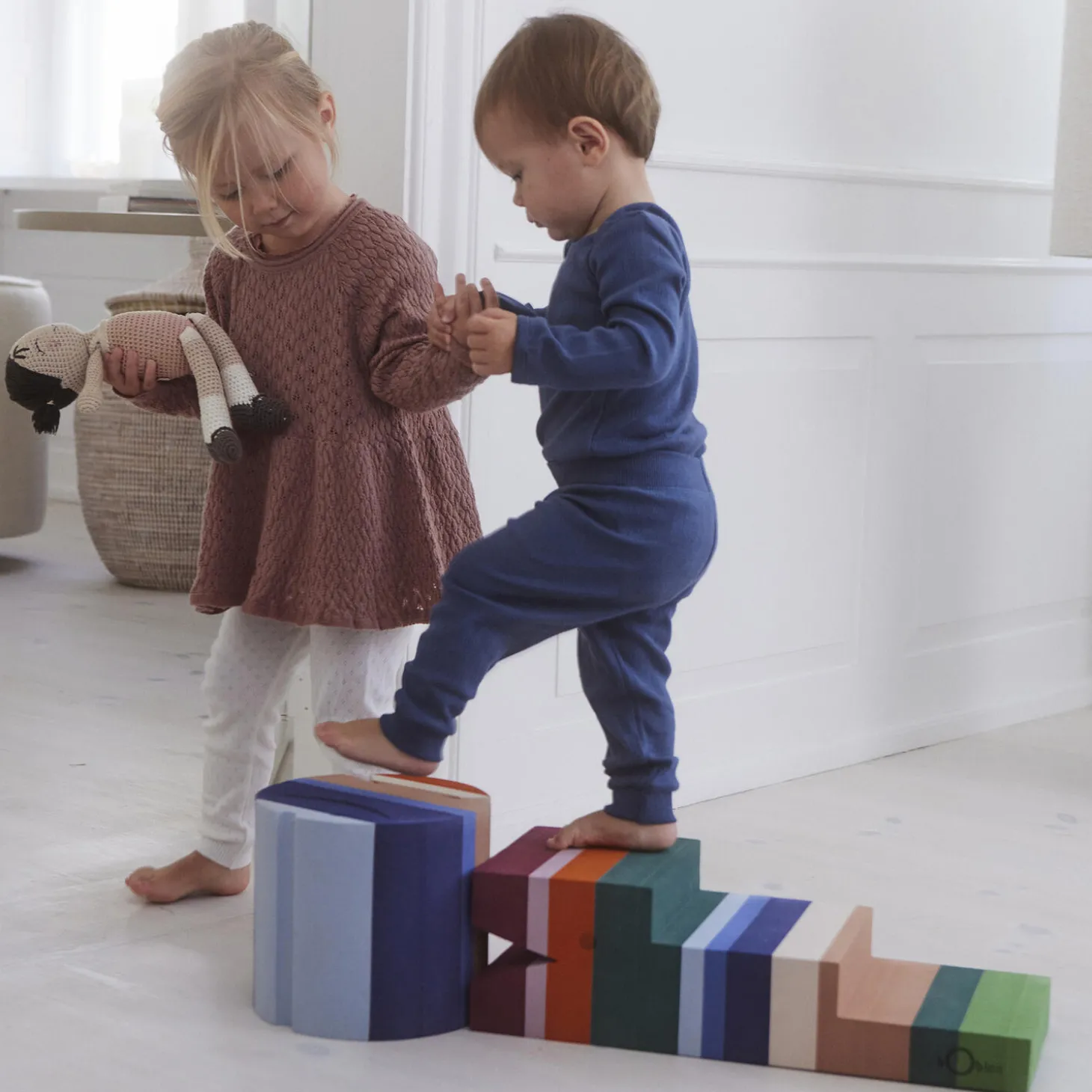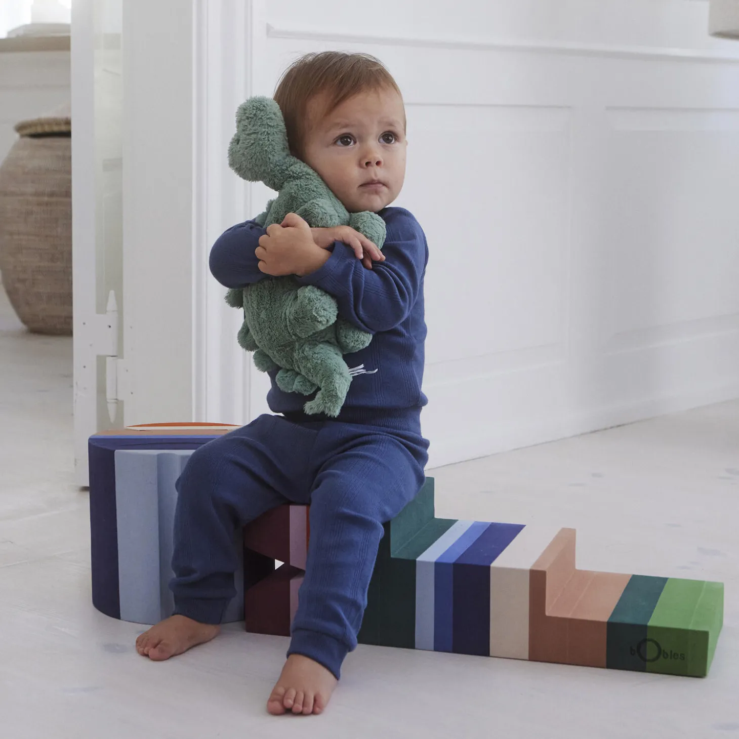 bObles Krokodille kommer i 2 størrelser der begge invitere til leg og bevægelse. Baby kan ligge behageligt på maven over den mellem Krokodilles skrå flade og styrke nakken eller senere hen bruge skråningen som en lille bilbane. Det større barn kan tage på en udfordrende gåtur op ad de smalle trappetrin og springe ud fra toppen – igen og igen!