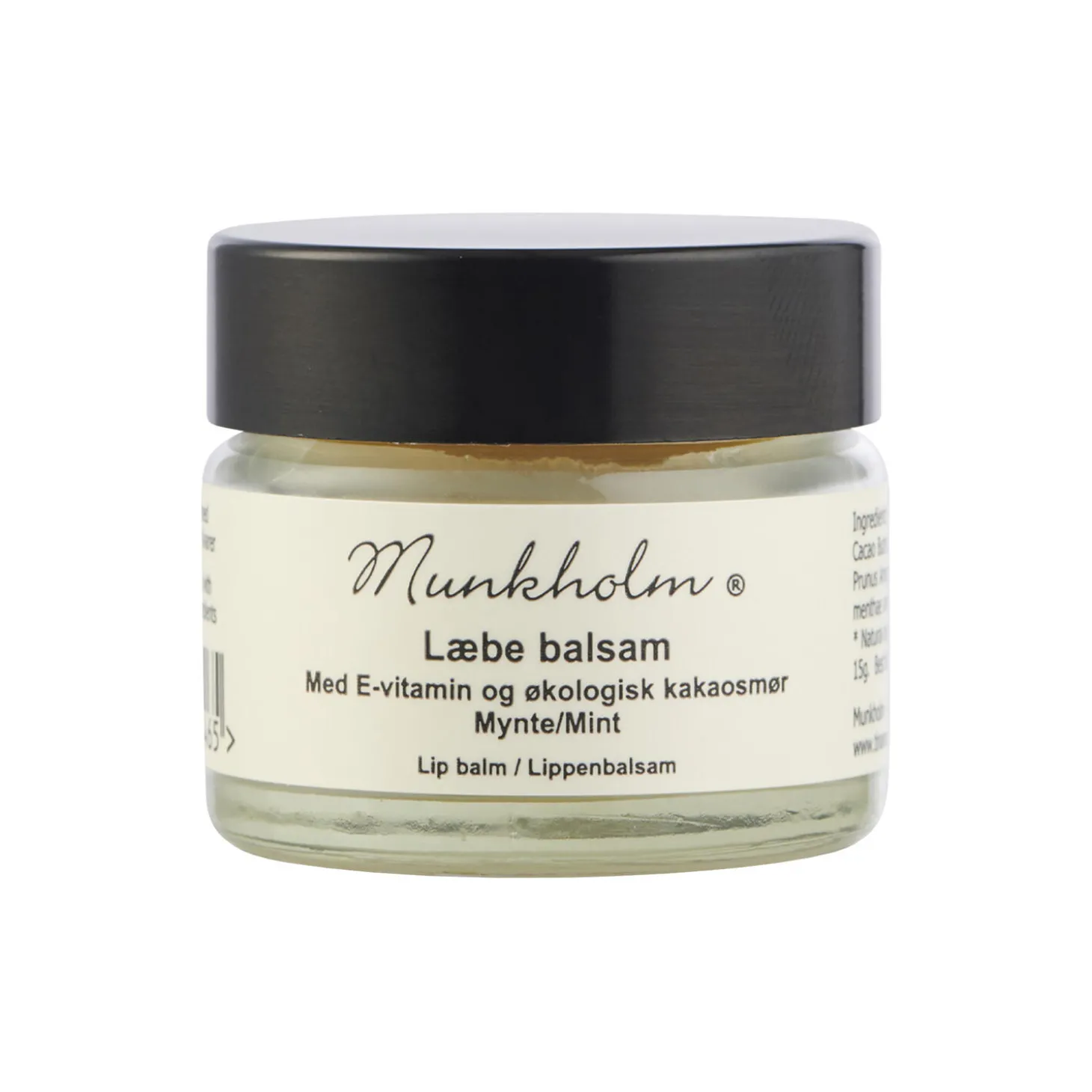 Læbebalsam med mandelolie og kakaosmør fra Munkholm. Fugtgivende og blødgørende. Duft: pebermynte. Indeholder: 15 ml.