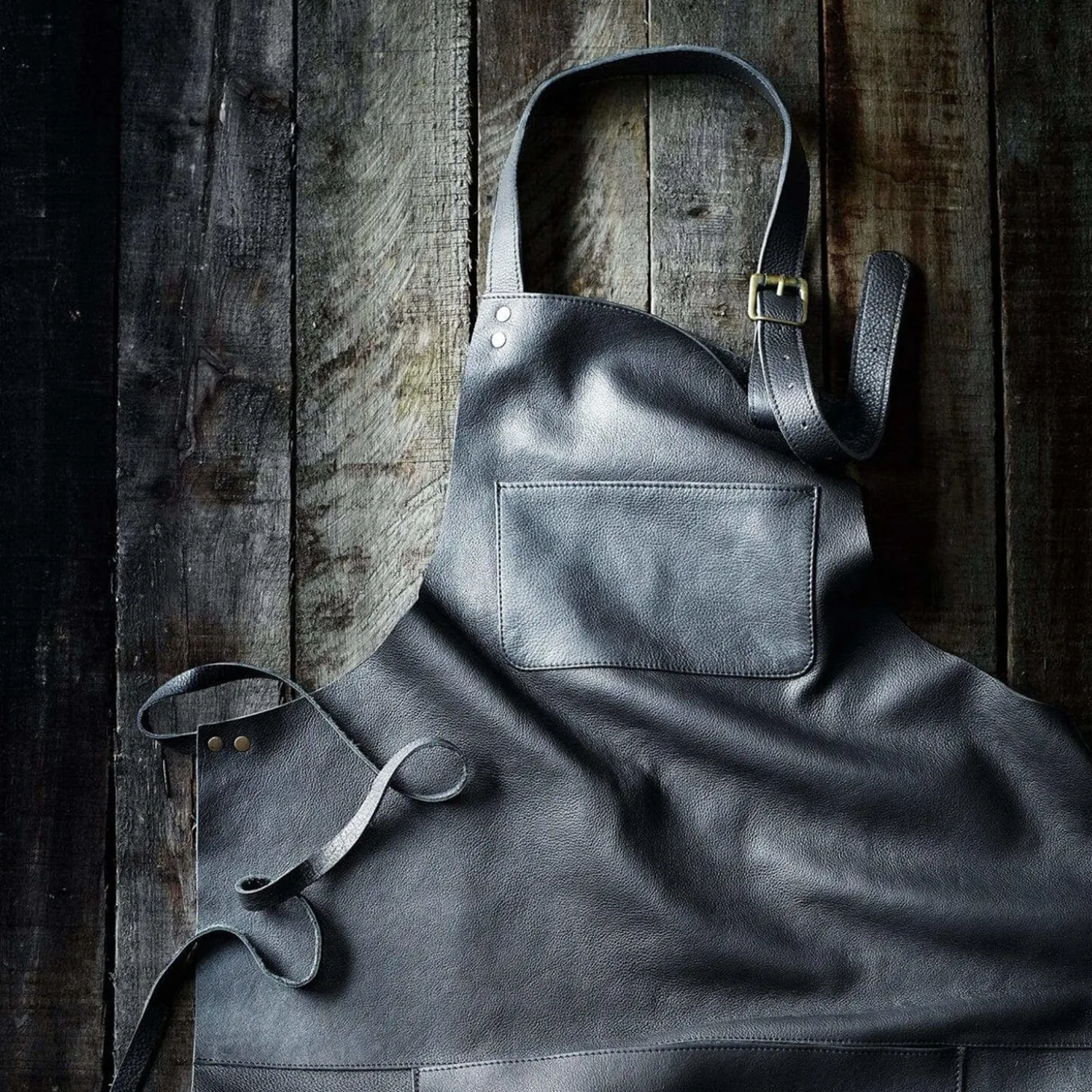 Oplev et lækkert læderforklæde, der er håndlavet i 100 % full grain kolæder. Det luksuriøse forklæde er fremstillet af kvalitetslæder, som er vegetabilsk garvet og føles enormt komfortabelt – og kun bliver flottere og mere behageligt med tiden, som materialet patinerer. Beskyt dit tøj under madlavningen, og udnyt desuden forklædets lommer til at have det vigtigste lige ved hånden. Forklædet kommer i en størrelse, som kan passe langt de fleste, da det let justeres i stropperne. Hvis nødvendigt, tørres det af med en hårdt oprevet klud efter brug, så er det klar til næste tur i køkkenet.