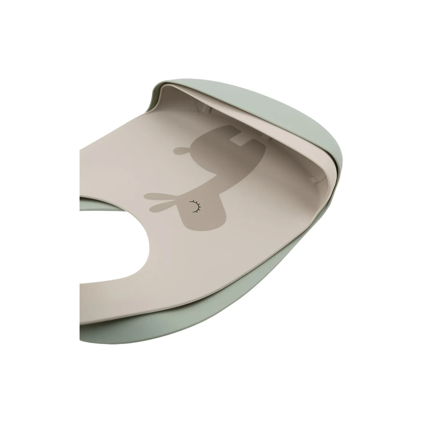 Lalee silikone hagesmæk i 100% fødevaregodkendt silikone fra Done by Deer. Farve: sand/green. Mål: H: 27 x B: 19 x D: 3,5 cm