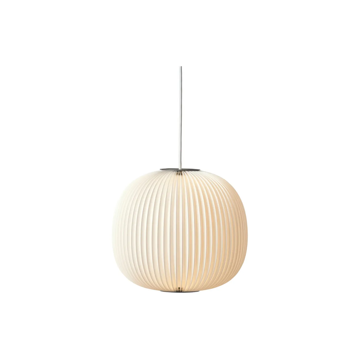 Lamella 3 pendel i plast og børstet aluminium fra LE KLINT. Farve: hvid. Mål: H: 29 x Ø 33 cm. Lyskilde: E27 LED. Design: Takagi & Homstvedt.