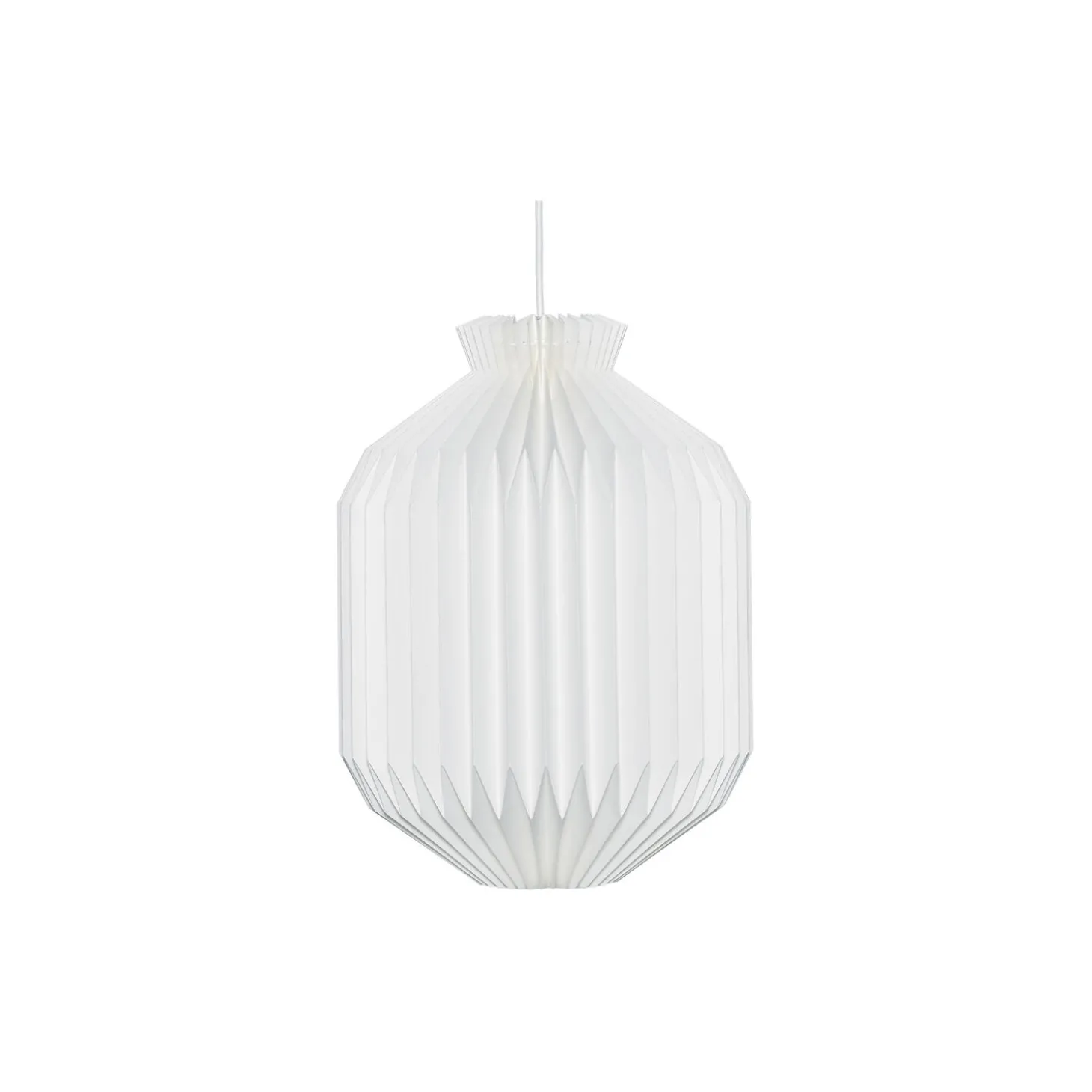 LE KLINT 105 pendel i håndfoldet plast fra LE KLINT. Inkl. stativ, sparepære og el-ophæng. Farve: hvid. H: 33 x Ø 26 cm. Lyskilde: maks. 40W E27. Design: Mogens Koch.