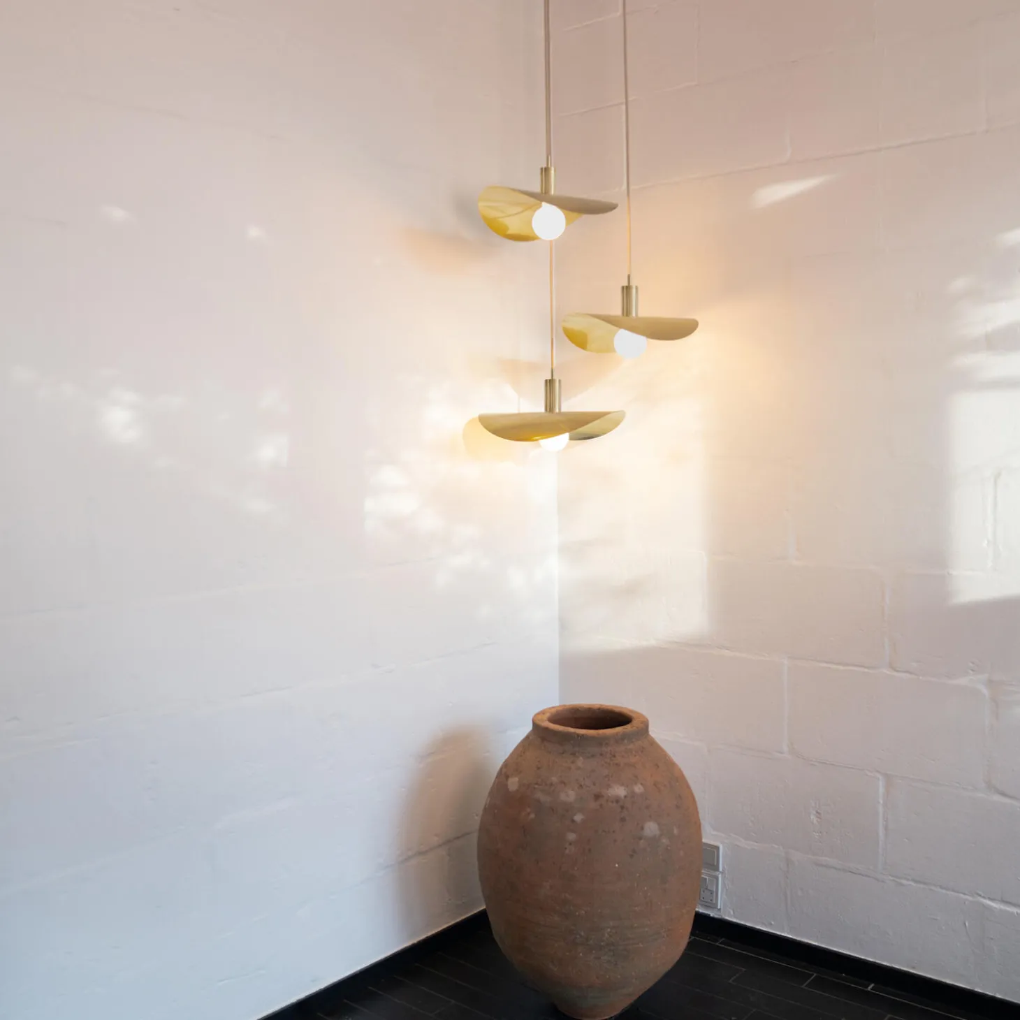 Leaf Pendellampe Small i børstet rå messing er en håndlavet lampe med et skulpturelt udtryk, der forandrer sig alt efter, hvorfra du ser den. Den organiske form og det eksklusive materiale giver varme og karakter til rummet – alene eller i klynge. Velegnet til hjørner, over et kaffebord eller flere sammen.Fremstillet i Danmark af massiv rå messing, som naturligt patinerer over tid. Leveres med stilrene klassiske roset i matchende messing og vores karakteristiske Luminar Pendel Lampe E27.