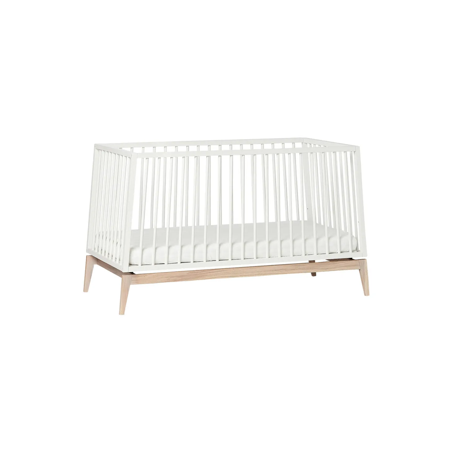 Let og svævende – det er tankerne bag Leander Luna™ babysengen. Sengens skrå linjer og den elegante konstruktion giver en ubesværet lethed, der er kendetegnende for nordisk design.Babysengen har et fleksibelt design, der vokser med dit barn. Brug tremmesengen med løftet bund og høje gavle de første måneder. Det vil skåne din ryg, når du skal putte din baby. Når dit barn begynder at kunne rejse sig, anbefaler vi, at du sænker bunden. Når der ikke længere er brug for tremmesiderne, kan du tilkøbe et smart modul, der forvandler babysengen til en åben seng med sengehest eller en lille, hyggelig sofa.Skab en hyggelig stemning på børneværelset med bløde tekstiler. I Leander Luna™ serien finder du sengerand, lagner og sengetøj i afstemte og stilrene farver, der tilfører varme og personlighed til indretningen.Giv dit barn optimal liggekomfort og ventilation med en original Leander Luna™ madras (140×70 cm).Ombygningssæt til Leander Luna™ babyseng Vores praktiske Luna™ ombygningssæt (separat tilkøb) gør det muligt at udskifte den ene tremmeside og dermed skabe enten en juniorseng med eller uden sengehest eller barnesofa.OBS: Sengen kan ikke bruges, hverken som åben seng eller sofa, uden brug af ombygningssættet.