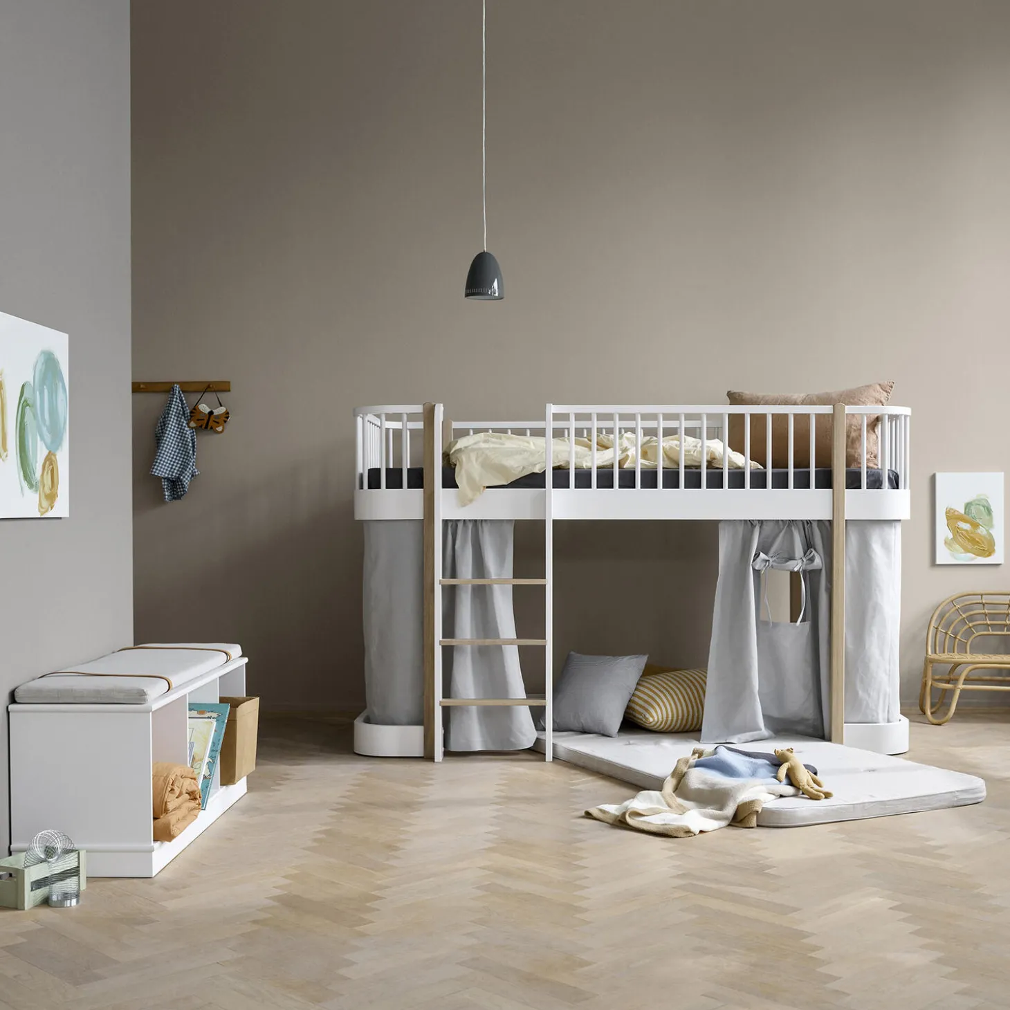 Legemadrassen passer i mål så den kan placeres under sengen, derved skabes der en hyggelig plads på børneværelset, hvor barnet kan lege. Et forhæng kan med fordel tilkøbes, så pladsen forvandles til en lille hule.Legemadrassen er fremstillet af europæisk koldskum, som er meget behageligt, åndbart, allergivenligt og let genvinder sin form efter brug. Betrækket er i bomuld.Betrækket er aftageligt og kan vaskes ved 30°.Madrassen er produceret i Europa og overholder de strenge EU-krav for sikkerhed og sundhed.