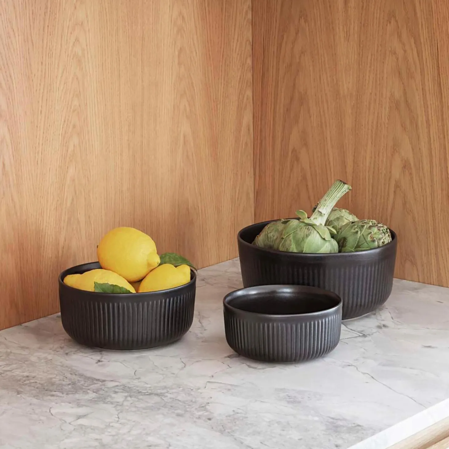 Skålen danner elegant ramme om enhver anretning. Den pynter og er praktisk på det store middagsbord såvel som på køkkenbordet i dagligdagen. Brug den til servering af salat, pasta, grøntsager eller som frugtskål. Legio Nova Black er en genfortolkning af det populære Legio Nova stel med en matsort finish inspireret af det rustikke, nordiske køkken. Med sit mørke farveunivers og de karakteristiske riller tilføjer stellet en spændende kontrast og dybde til enhver bordopdækning. Stentøjet er af højeste kvalitet og kan tåle alt fra ovn og fryser til mikrobølgeovn og opvaskemaskine. Legio Nova stellet er dækket af en 10-års garanti (scan QR-kode for mere information).