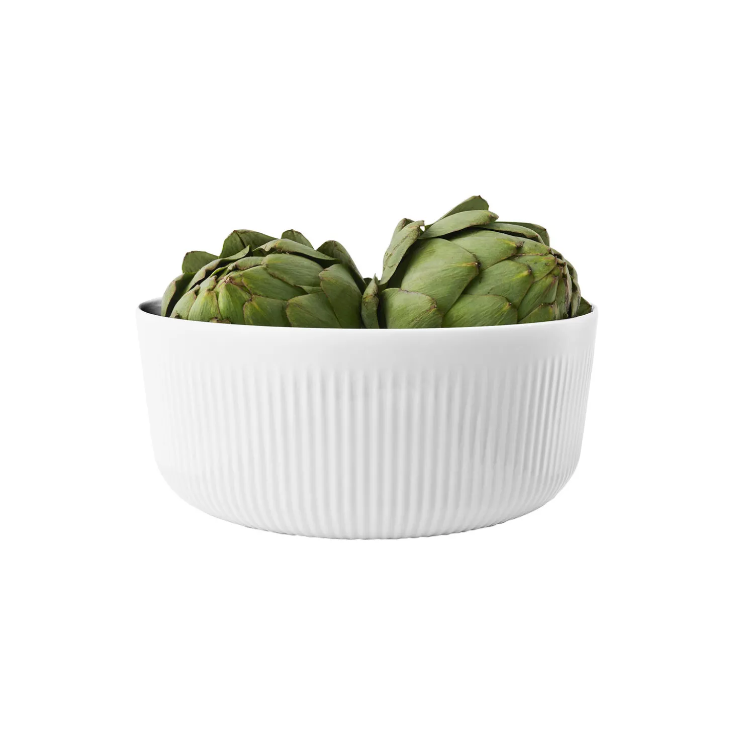 Legio Nova skålen danner elegant ramme om enhver anretning. Skålen pynter og er praktisk på det store middagsbord såvel som på køkkenbordet i dagligdagen. Skålen har en god rummelig størrelse, som giver den flere anvendelsesmuligheder. Brug den f.eks. til salat, pasta, grøntsager eller frugtskål. Til skålen passer Eva Trio grydelåg, som kan tilkøbes. Nem at rengøre, tåler ovn, fryser, mikroovn og maskinopvask.