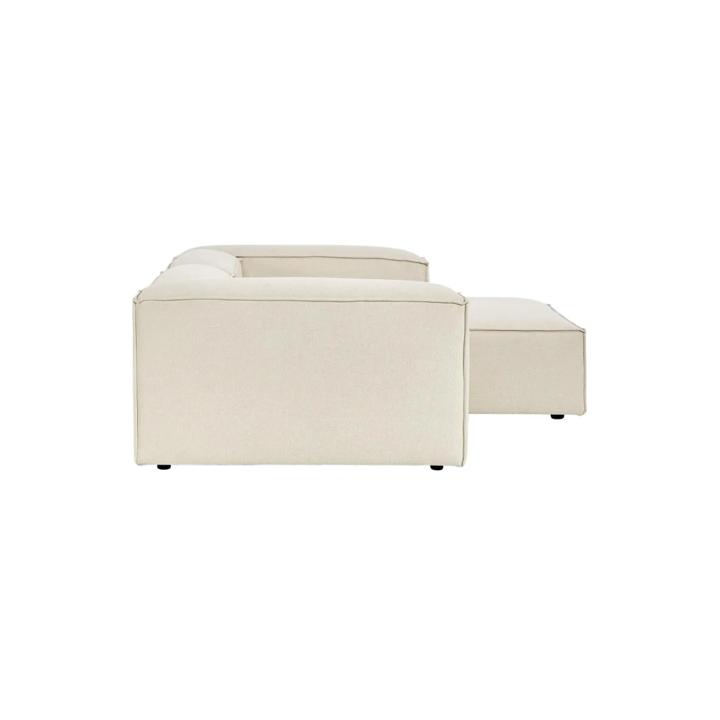 Loungesofa med ekstra stor siddeflade. Modulerbar: Kan kombineres og udvides helt efter ønske med et nemt kliksystem. Meget slidstærkt og nemt plejeligt møbelstof, tilgængelig i mange farvevarianter. Fremstillet i Europa. Når du står foran sofaen, er hjørneelementet placeret på højre side. Fremstillet i Europa. Det slidstærke materiale er testet med 115.000 Martindale-omdrejninger. På grund af den høje slidstyrke er stoffer med en Martindale-værdi på 80.000 eller derover særligt holdbare. Materialet, der anvendes i dette produkt, er testet for skadelige stoffer og er certificeret i henhold til STANDARD 100 by OEKO-TEX® 20.HPL.30144, HOHENSTEIN HTTI. Produktet leveres pladsbesparende pakket og kan bruges med det samme efter montering af benene. Betrækket kan ikke tages af. Lettere snavs kan nemt fjernes med en fugtig klud. Ved genstridige pletter kan almindelige tekstilrengøringsmidler anvendes. Sprays til tekstilrengøring og imprægnering findes også i vores sortiment. Da vi ikke kan give garanti på rengøringsmidler, har vi følgende tip til dig: Test altid rengøringsmidler på et ikke synligt område først! På den måde kan du sikre, at stoffet ikke beskadiges. For at sikre lang levetid anbefaler vi, at du imprægnerer stoffet. Vores tip: Sørg for, at dine polstermøbler ikke udsættes for direkte sollys! Tekstiler er lysfølsomme og kan falme over tid. Dette produkt fremstilles specielt til Westwing, så vi beder om forståelse for en tilsvarende længere leveringstid. .