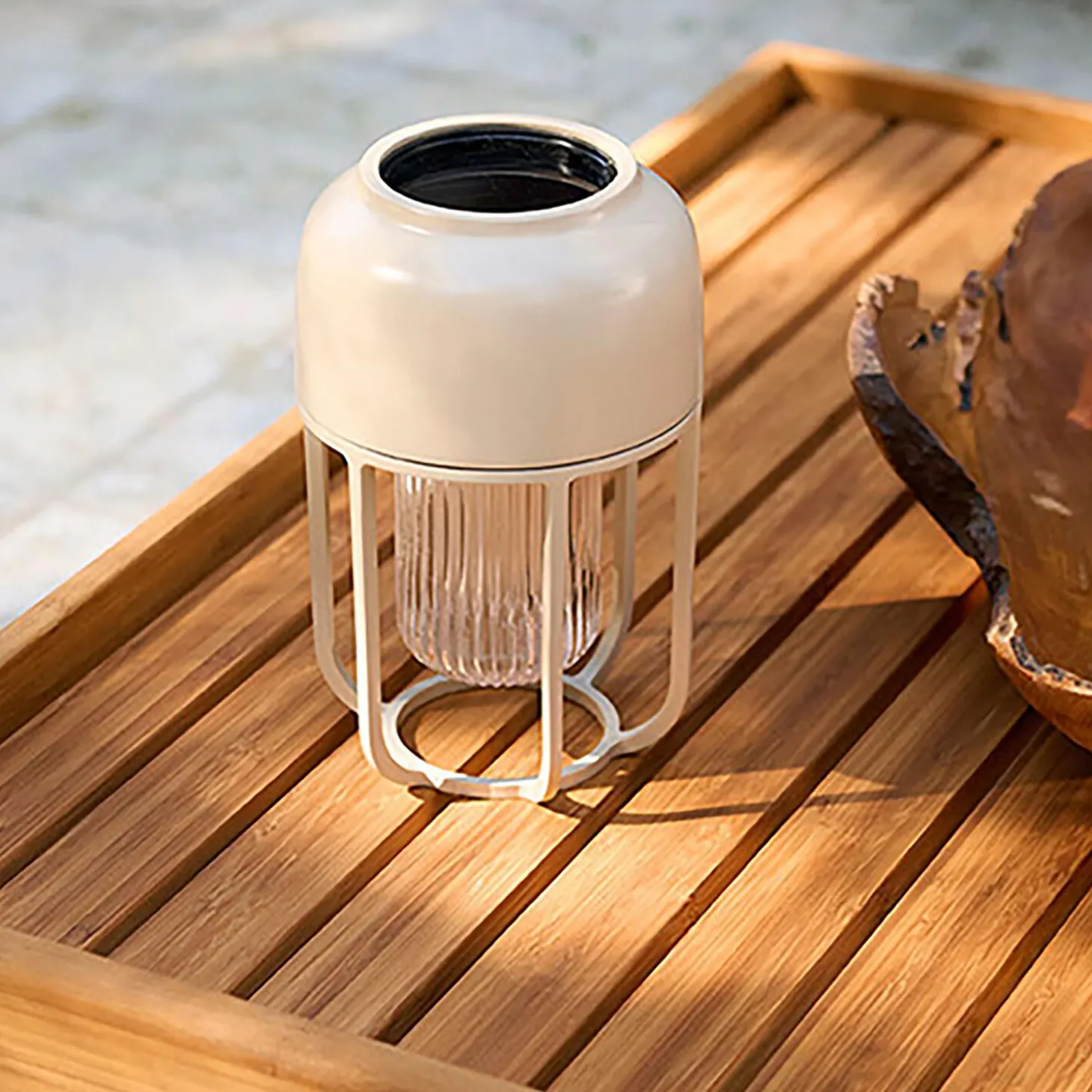 LIGHT No.1 is a portable solar-powered lamp for use both outdoor and indoor. Featuring the high-quality aesthetics known from interior lighting. The appearance is characterized by an elegant, smooth surface and an appealing color palette. The design ensures discrete placement of the solar module, which becomes an integrated part of the lamp.