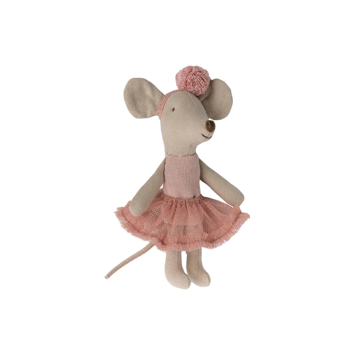 Lillesøster mus som en yndefuld ballerina. Hun har en smuk rosafarvet tyl nederdel på og et smukt pandebånd – klar til timevis af dans.