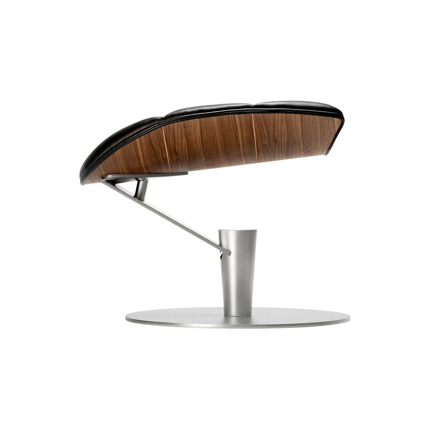 - Materiale: polstring i Paris Passion 539 semi-anilinlæder af Sørensen Leather, skal i matlakeret valnød og base i satinforkromet stål