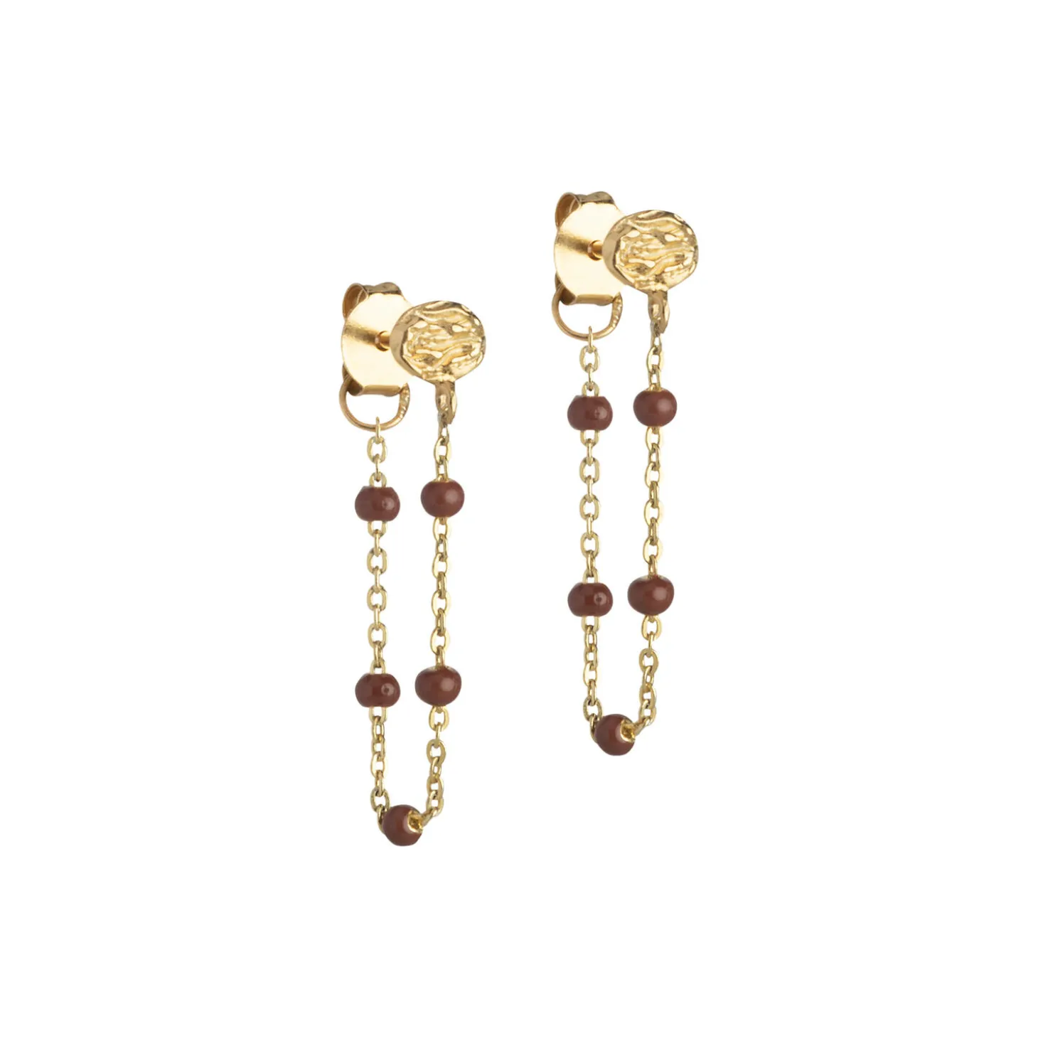 Lola Øreringe er en fin kæde med små farvede emaljer. Øreringen giver en fin detalje og kan perfekt kombineres med både store og små Øreringe. Findes i flere farver. Obs: Vær opmærksom på IKKE at bære vores Lola styles i bad, når du sover og for tæt på parfumer og cremer, da emaljen kan ændre farve og struktur.