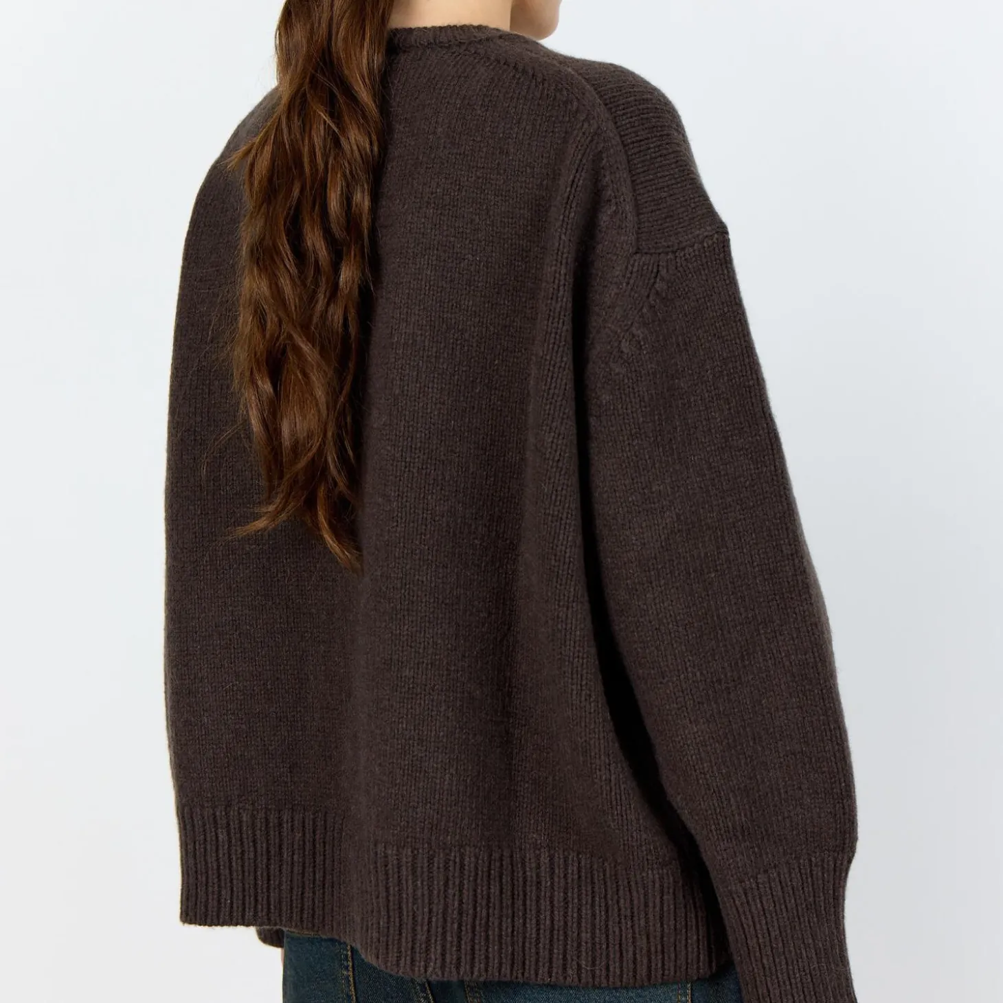 LR-PERLE 1 er en skøn pullover fremstillet af 90% merinould og 10% kashmir. Den har en ribbet halsudskæring, hængende skuldre og en lige kant med en glatstrikket tekstur. Sæt den sammen med skræddersyede bukser eller afslappede jeans for forskellige looks.