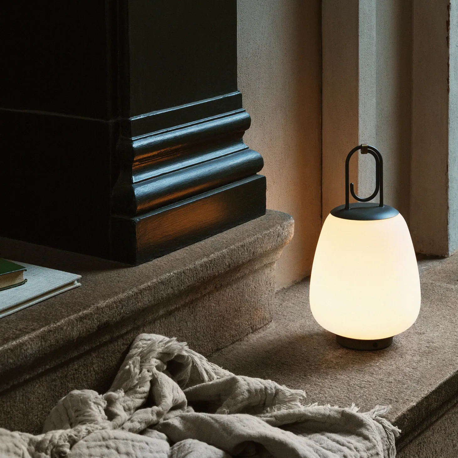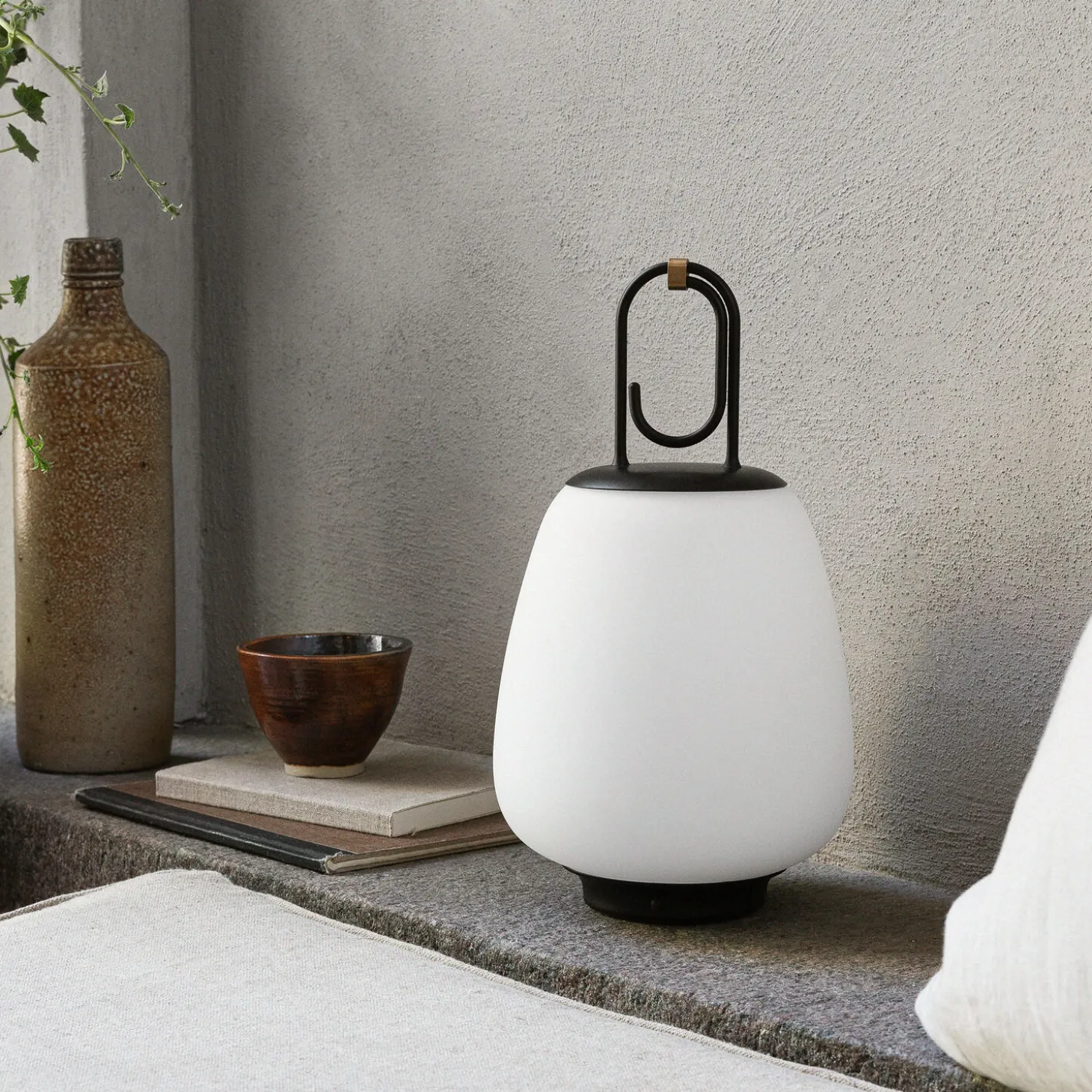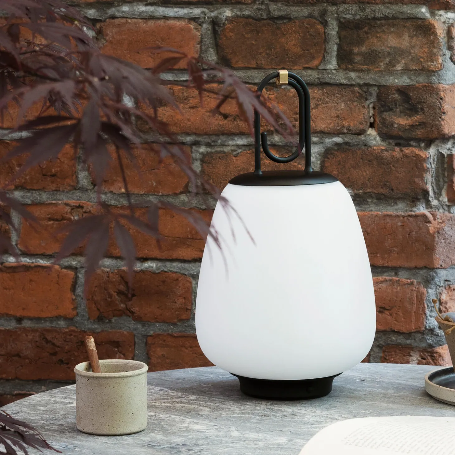 Lucca SC51 transportabel bordlampe i opalglas, pulverlakeret stål og messing fra &Tradition. Farve: black. Mål: H: 28 x Ø 16 cm. Lyskilde: 2,5W integreret LED. Design: Space Copenhagen.