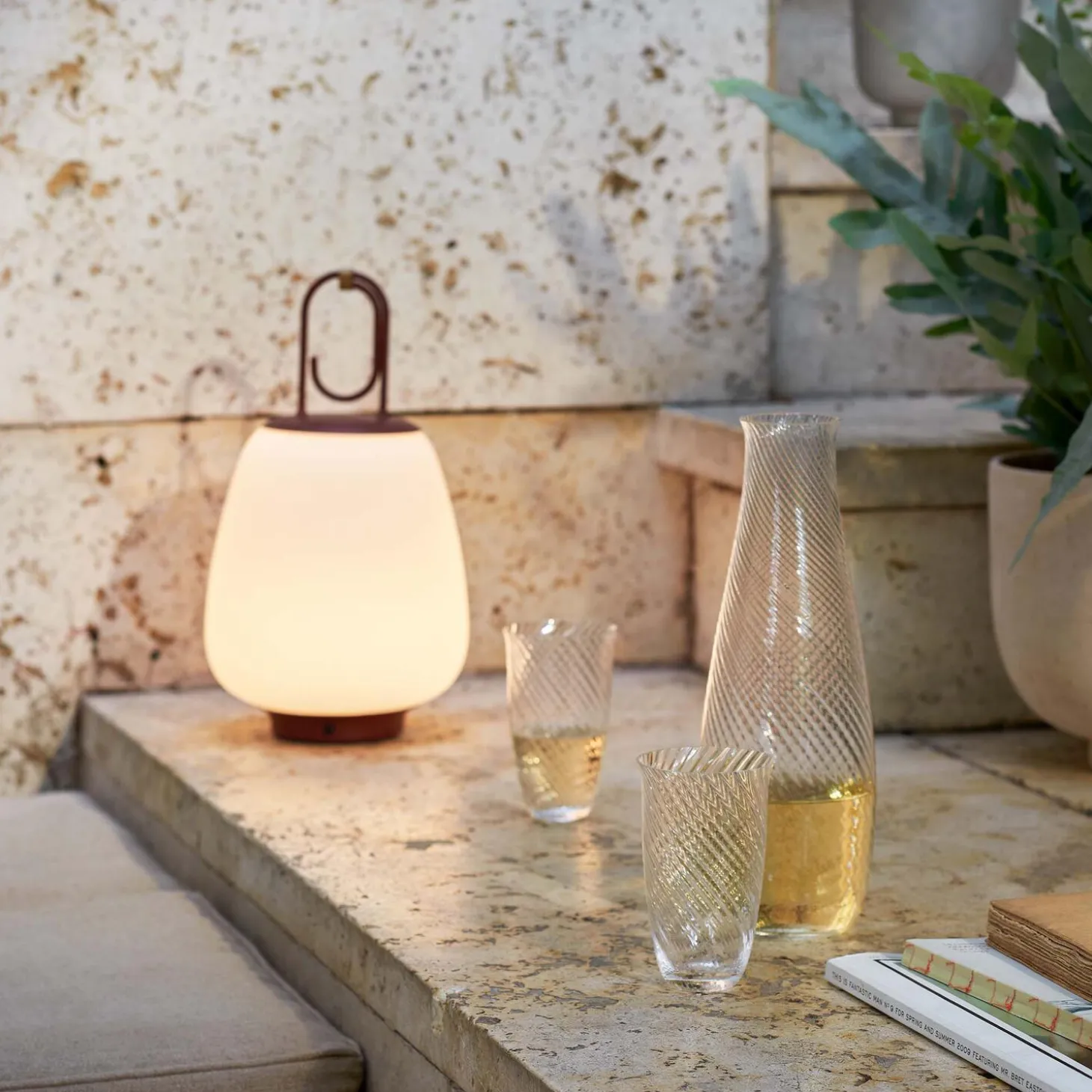 Lucca SC51 transportabel bordlampe i opalglas, pulverlakeret stål og messing fra &Tradition. Farve: maroon. Mål: H: 28 x Ø 16 cm. Lyskilde: 2,5W integreret LED. Design: Space Copenhagen.