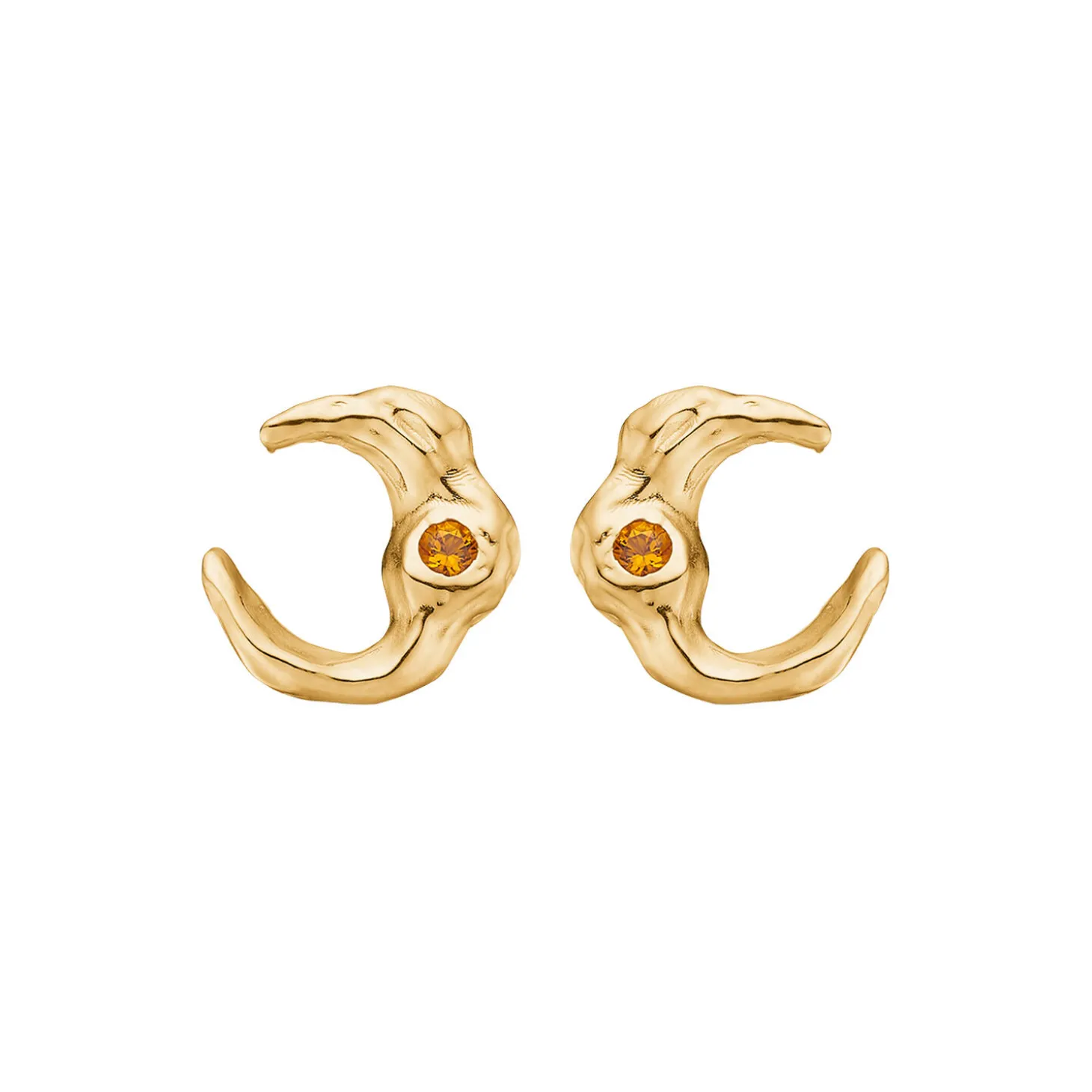 Sølv forgyldt ørestik Lunar med orange zirkonia fra Studio Z.