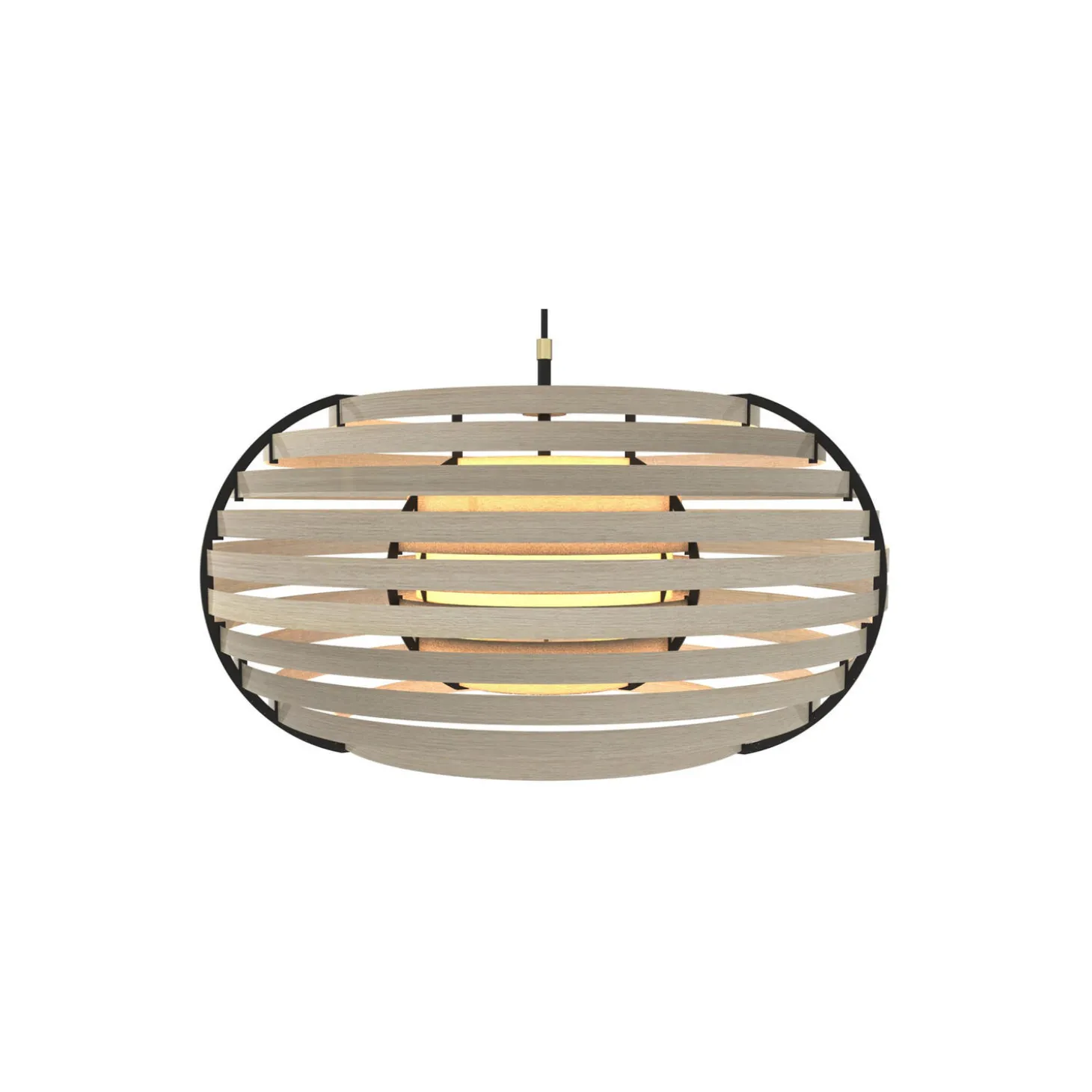 M60 pendel i lakeret ask og sortoxideret stål fra Brian Kirk. Farve: ask. Mål: H: 30 x Ø 60 cm. Lyskilde: maks. 60W E27. Design: Brian Kirk.