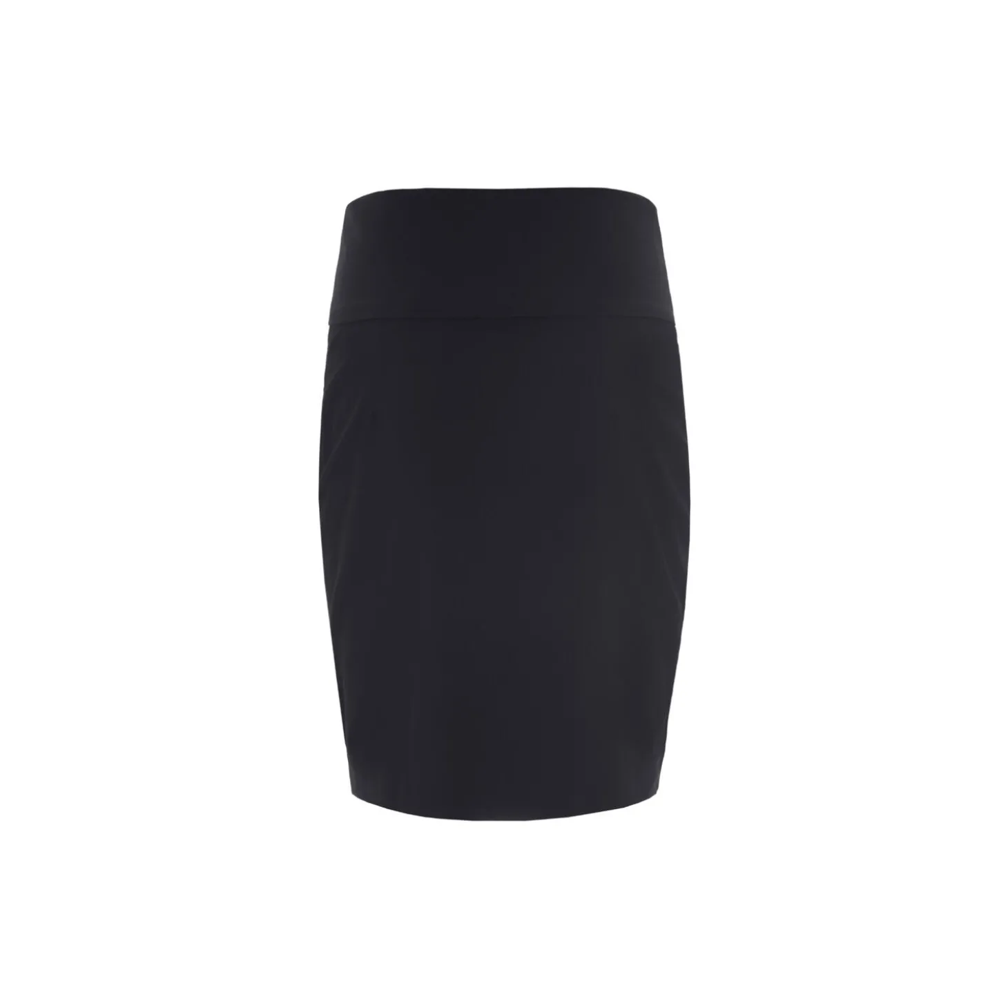 Basisnederdel med klædelig og tætsiddende pasform. Der er stretch i nederdelen, som sikrer en god bevægelighed. Nederdelens brede linning kan trækkes op over maven eller foldes ned for en almindelig taljehøjde. Denne effekt gør den meget behagelig.