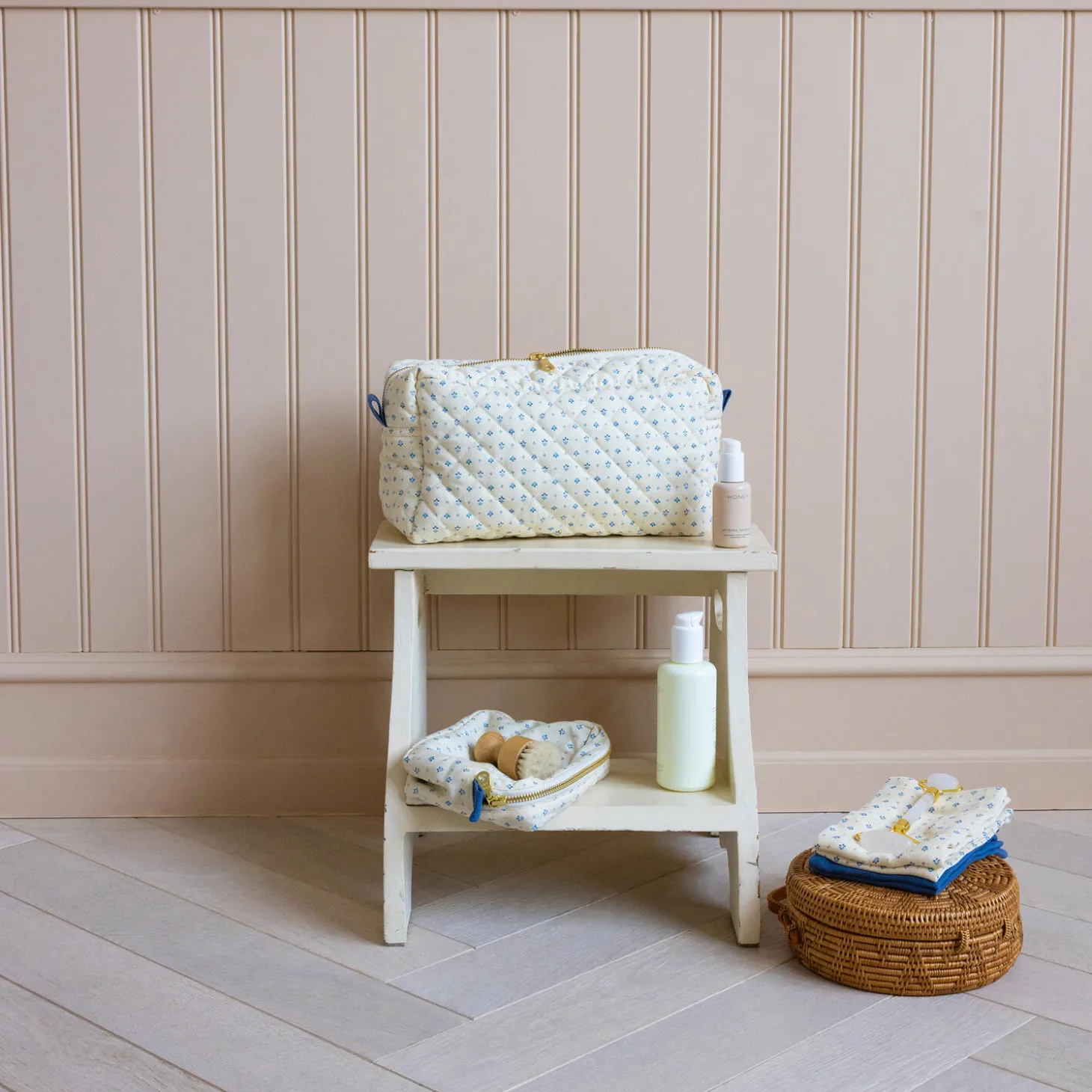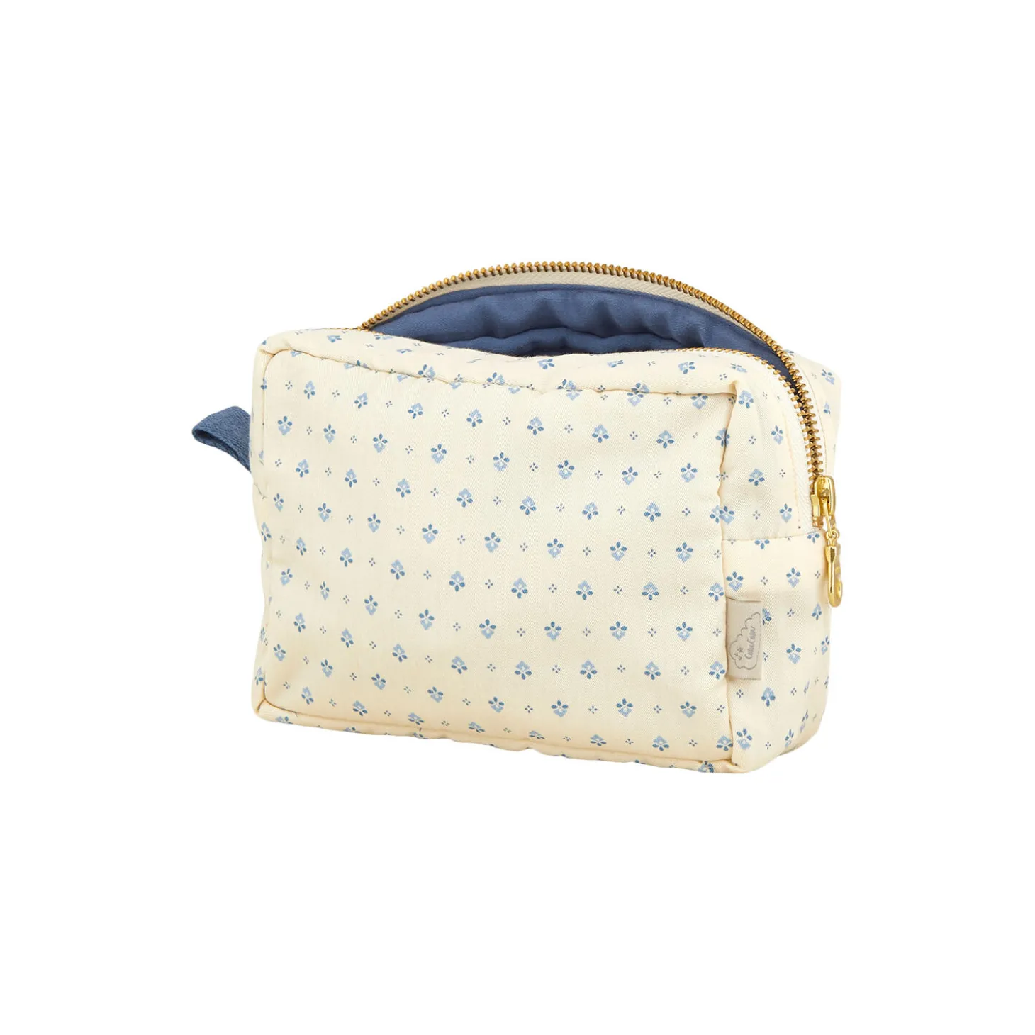 Makeup-pungen er det mindste medlem af Cam Cam Copenhagen’s taskefamilie. Perfekt til mors makeup eller on-the-go nødvendigheder som creme og små vådservietter. Makeup Pung i blå og hvide nuancer.