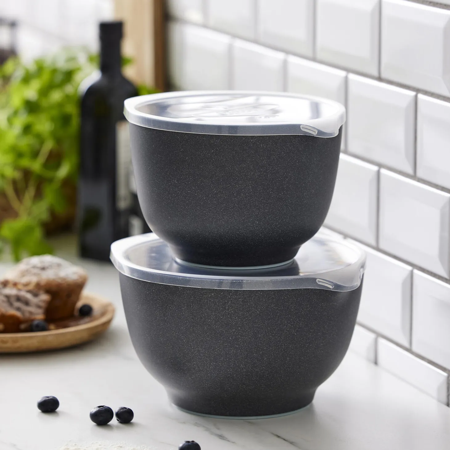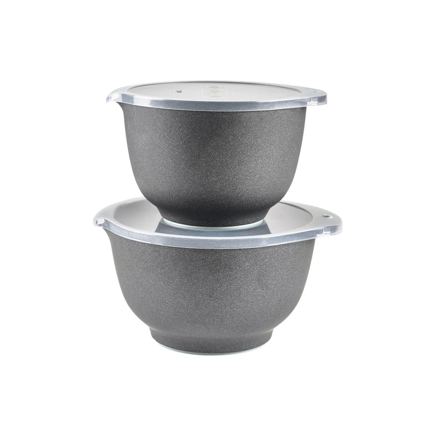 Margrethe røreskålesæt fra Rosti i størrelserne 2 og 3 liter med tilhørende låg. De nistrede Pebble-farver giver den ikoniske Margrethe-skål et spændende udtryk med en mat yderside i kontrast til den blanke inderside. Skålen er ideel til tilberedning og servering. Med låg er røreskålen en praktisk opbevaringsskål.
