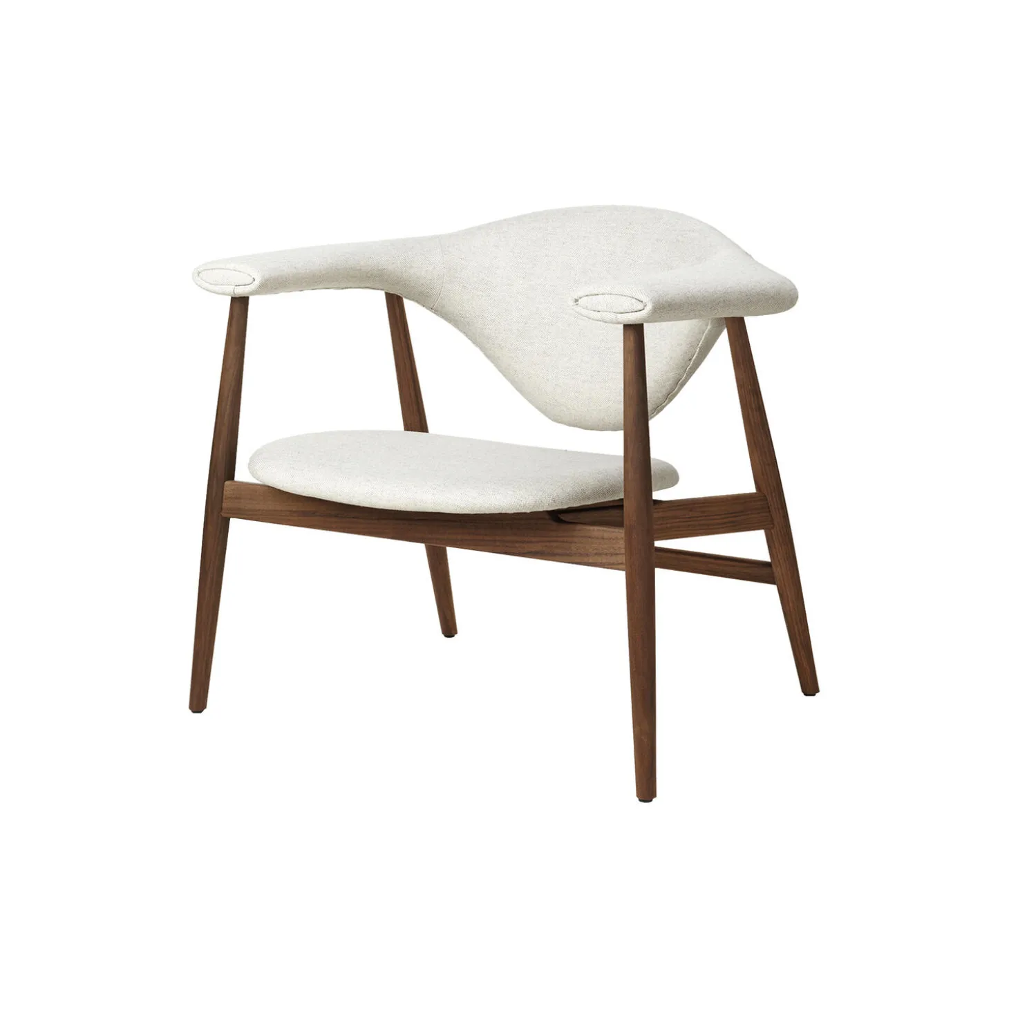 Masculo Lounge Chair fuldpolstret i Plain 0026 tekstil af Enzo Degli Angiuoni og stel i olieret amerikansk valnød fra GUBI. Farve: Plain 0026/oiled american walnut. Mål: H: 70 x B: 81 x D: 64 cm. Siddehøjde: 35 cm. Design: GamFratesi.
