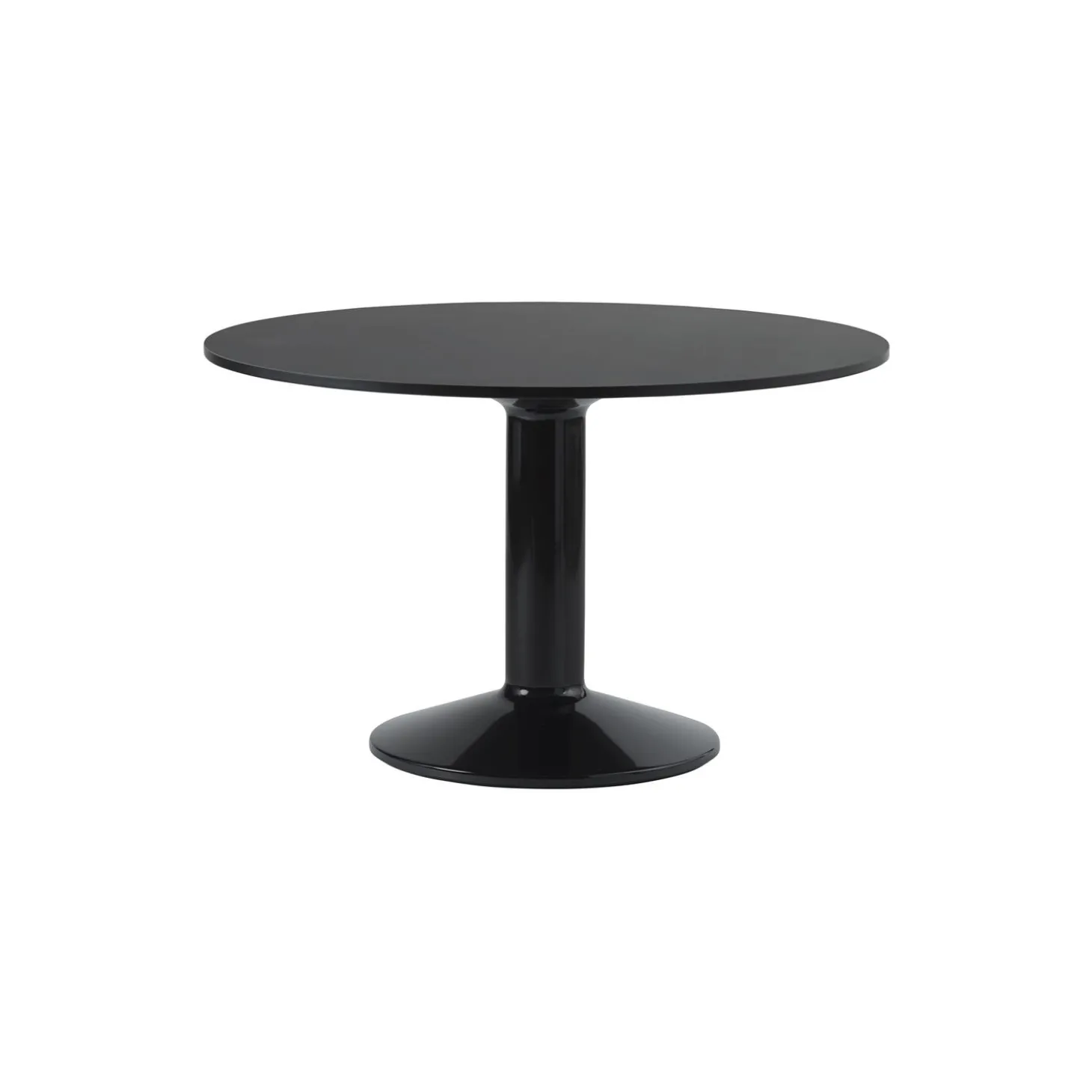 Midst Table from Muuto. A natural focal point of the home, the Midst Table is a generous, round dining table where friends and family gather — and there is always room to squeeze in one more guest. Its refined silhouette is simple yet characteristic, enhanced by distinct detailing and contrasting materiality; matte solid oak or linoleum on a monolithic base made of spun steel with a durable high gloss finish.