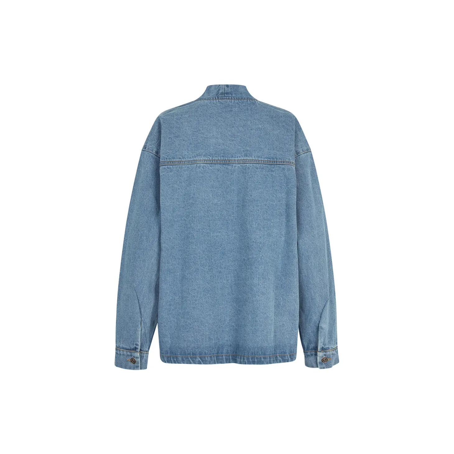 - Farve: washed denim