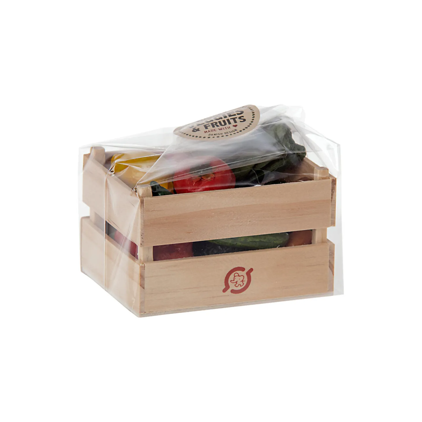 Husk dine grøntsager og frugt, som lægen altid siger. En trækasse fyldt med miniaturemad lavet med de mest utrolige detaljer. Det er håndmalet, hvorfor variation kan forekomme.
