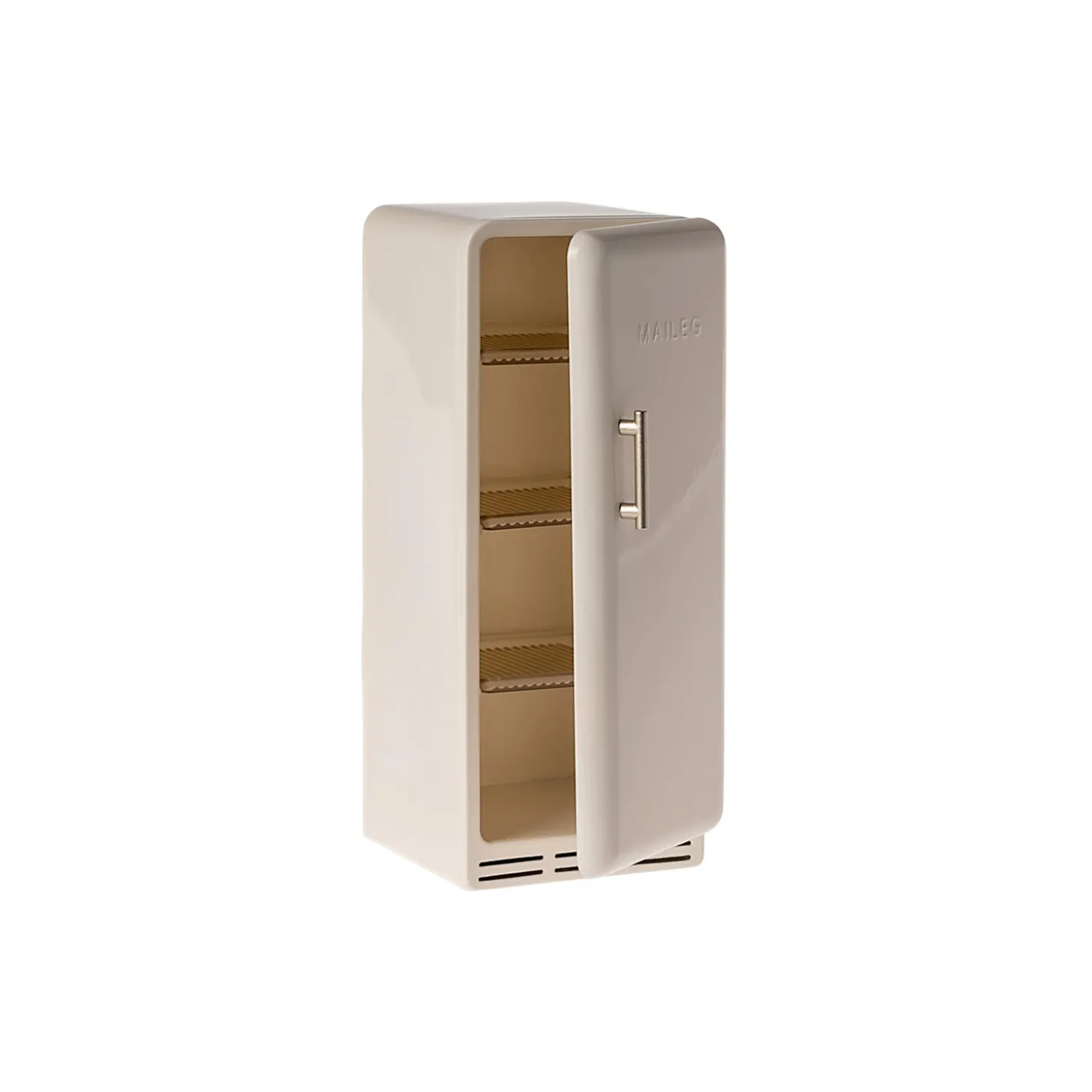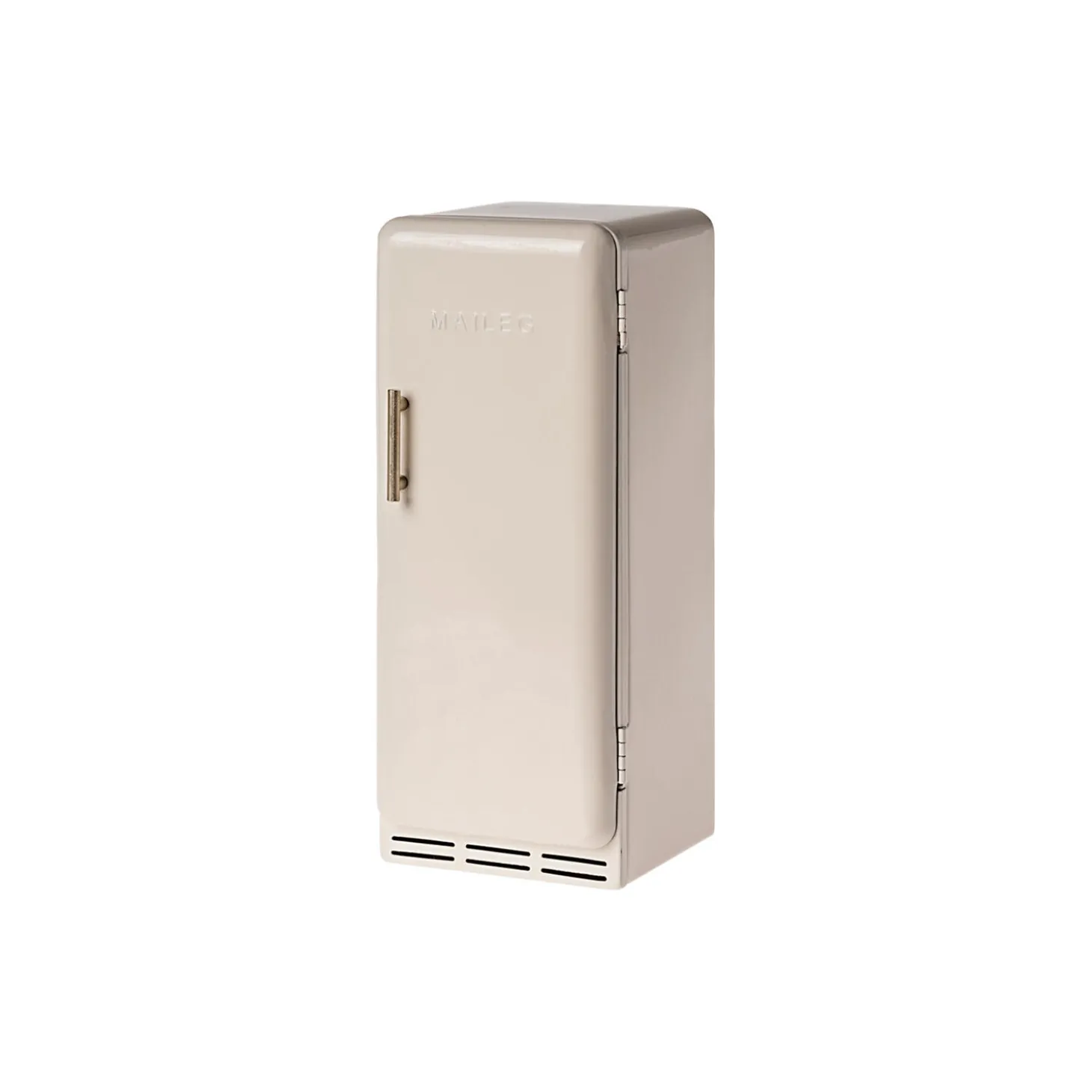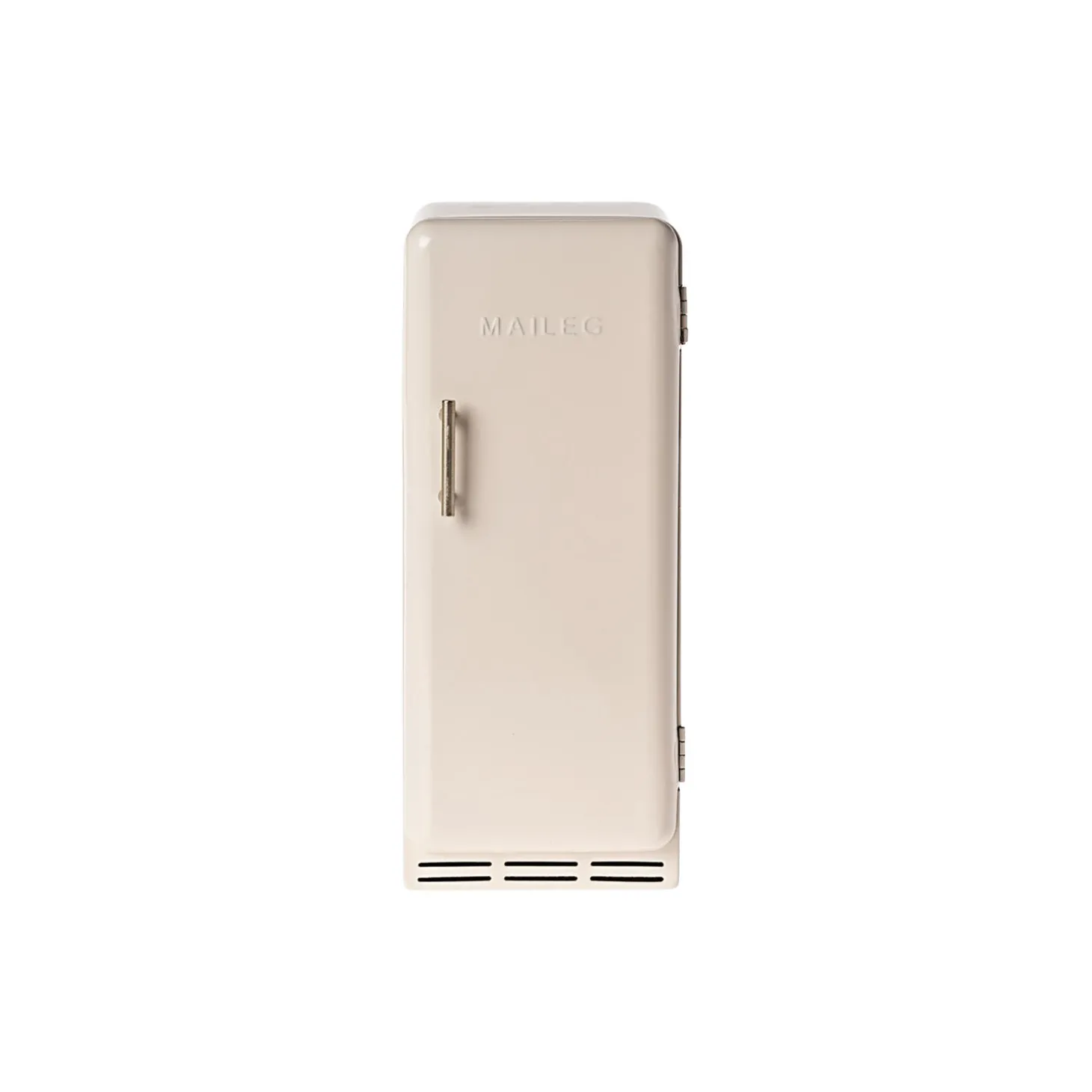 Et gammeldags køleskab, der passer perfekt ind i Maileg dukkehuset. Køleskabet er lavet i metal med magnetlås og hylder indeni. En god tilføjelse til dette køleskab er vores miniature købmandskasse og miniature grøntsager og frugt.