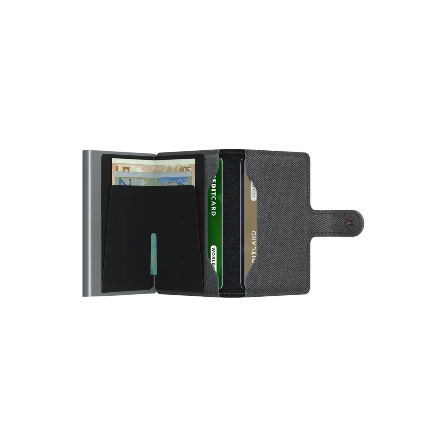 Med baggrund i Secrid Cardprotector er Miniwallet’en lige så kompakt og sikker som en tegnebog. Ud over plads til seks kort i Cardprotector har den også plads til nogle kort, sedler, bon’er og visitkort. Miniwallet er kompakt og pga. trykknaplukningen er den velegnet til at have liggende løst i tasker og lignende. Secrid Cardprotector virker som en firewall i din pung. RFID/NFC kort er ikke sikkert opbevaret i din regulære pung. RFID (Radio Frequency Identification) eller NFC (Near Field Communication) kort har en chip og en antenne til trådløs kommunikation. Disse kort, som f.eks. transportpas, nye kredit kort og adgangskort, kan aktiveres, vælges og kopieres, på mange meters afstand, uden at du opdager det. Det sker ikke, når du opbevarer dine kort sikkert i Secrid’s Miniwallet.