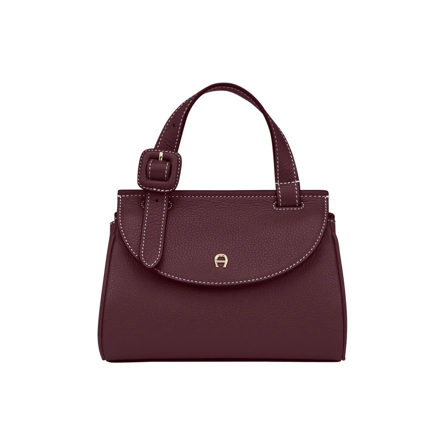 MIRANDA XS Mini-Bag. 24H x 20W x 7D cm. Metal parts: shiny light gold. Grip height: 8.5 cm. Shoulder strap height: 48 – 56 cm, adjustable. Closure: magnetic closure. Stick case: 1.