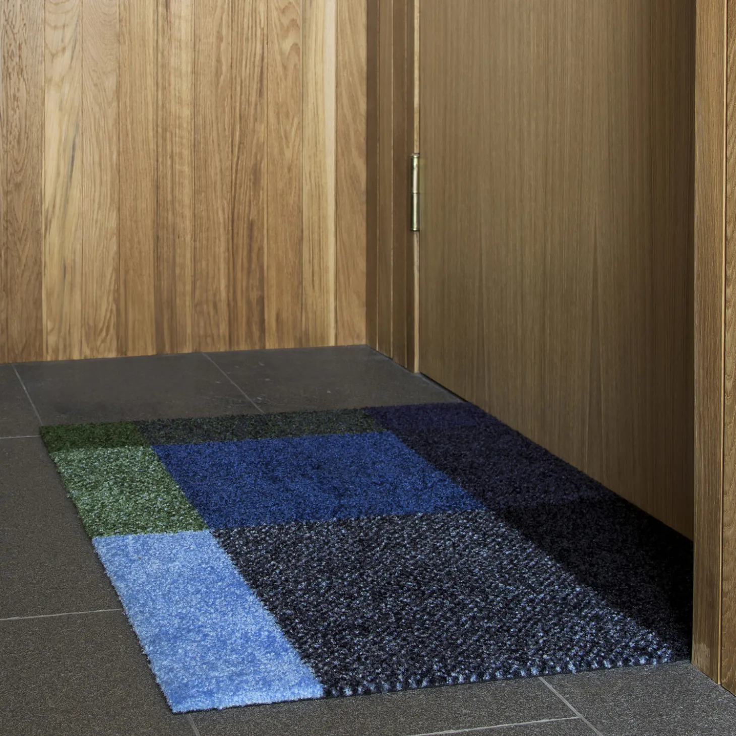 High quality doormats designed for indoor use. The mat has a soft upper surface and rubber backing. Mix Forest is inspired by the Norwegian forests’ fresh hues. Rectangular shapes of greys, blues and greens meet in different melanges, creating a contemporary pattern reminiscent of traditional, woven textiles. Mix Forest is part of the Mix collection, which also consists of Mix Berry, Mix Gem, Mix Meadow and Mix Teklan. *Be aware that width and length can vary 1-2 cm