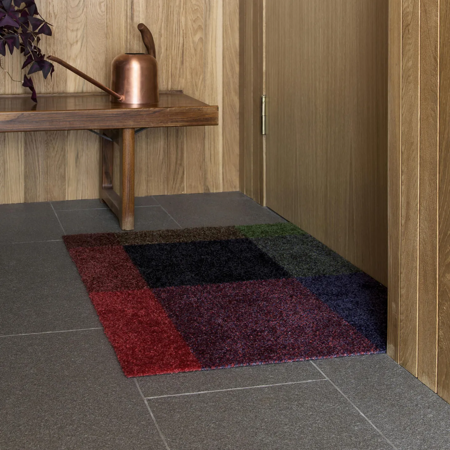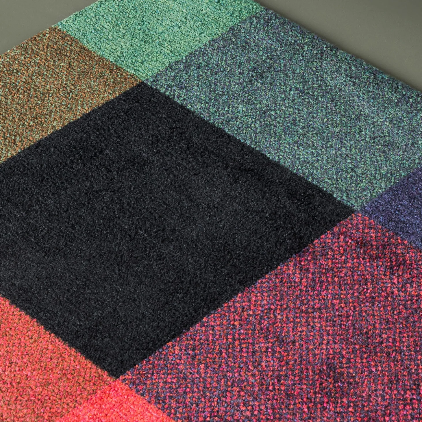 High quality doormats designed for indoor use. The mat has a soft upper surface and rubber backing. Mix Gem’s deep hues of emerald, sapphire and ruby come together in a beautiful piece of jewellery. Rectangular shapes in rich green, blue and red meet in different melanges, creating a contemporary pattern reminiscent of traditional, woven textiles. Mix Gem is part of the Mix collection, which also consists of Mix Berry, Mix Forest, Mix Meadow and Mix Teklan. *Be aware that width and length can vary 1-2 cm