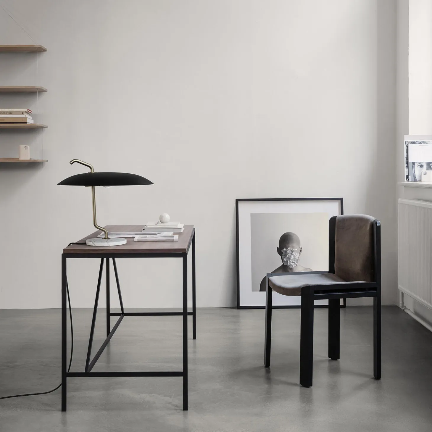 Model 537 Table Lamp in spun aluminium, brass and marble from Astep. Colour: brass/black/white. Dimensions: H: 36 x W: 40 x D: 40 cm. Light Source: 4.5W LED (max. 60W) E27. Design: Gino Sarfatti. Complimentary bulb included. At the origin of any model of portable lamp, there is this exceptional creation which reflects the genius and mastery of Gino Sarfatti, well ahead of his time. Model 537, designed around 1950, is a master piece reintroduced by Astep. In its simplicity, this lamp stands out for the combination of fine materials and its ingenious and ironic design. The large aluminum reflector is mounted asymmetrically on a burnished or polished brass stem, which is carefully twisted, coming to rest on the marble base. The stem extends through the reflector and beyond with a backward movement, giving the upper part of the stem a dual function of playful element and practical handle that anticipates the integrated handle of contemporary portable lights by years. Model 537 is easily carried by hand from the desk to the living room, to the bedroom to any other environment, illuminating it with genius and design.