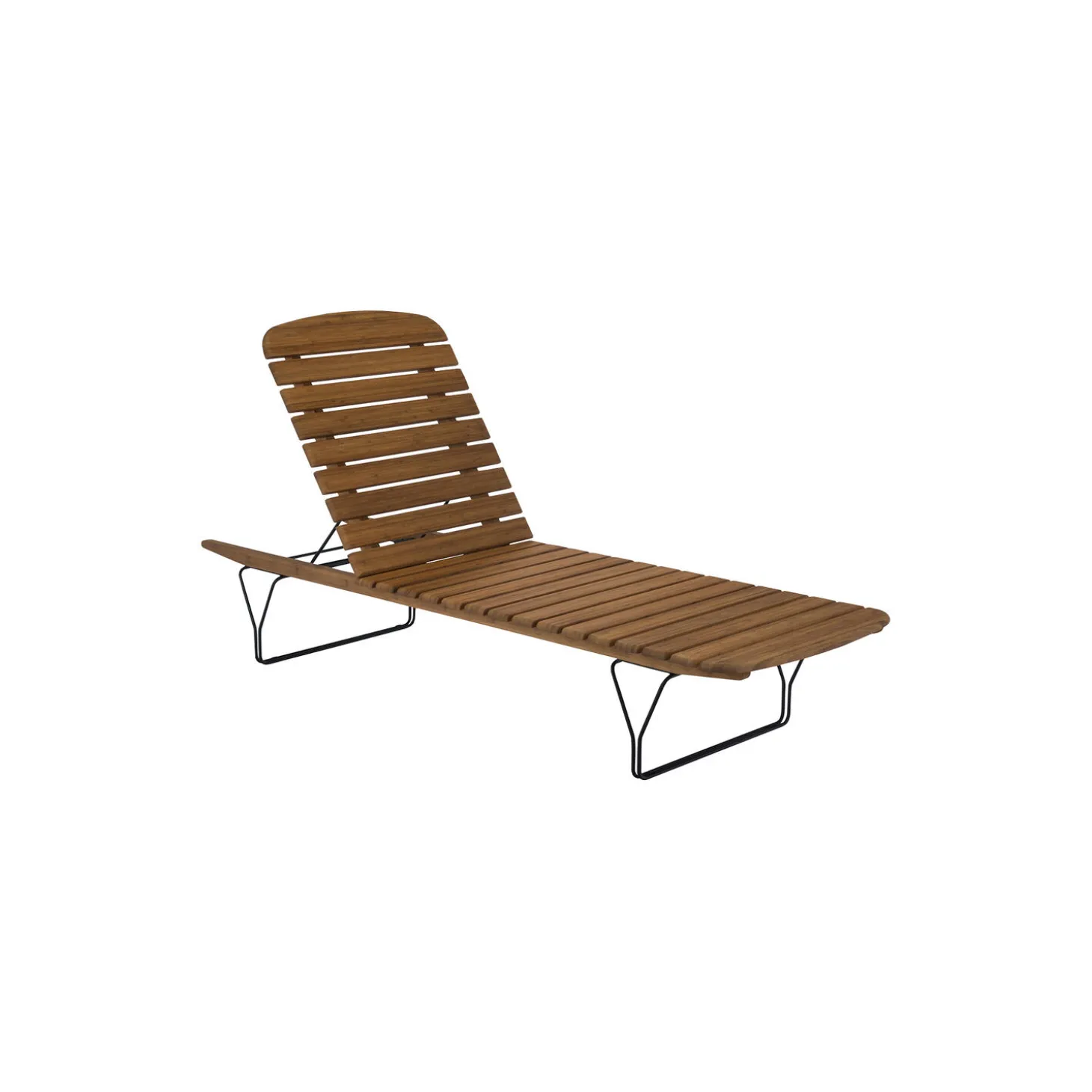 MOLO solseng i pulverlakeret aluminiumsstel med bambus top fra HOUE. Farve: bambus/sort. Mål: H: 34,5 cm. Design: Henrik Pedersen.