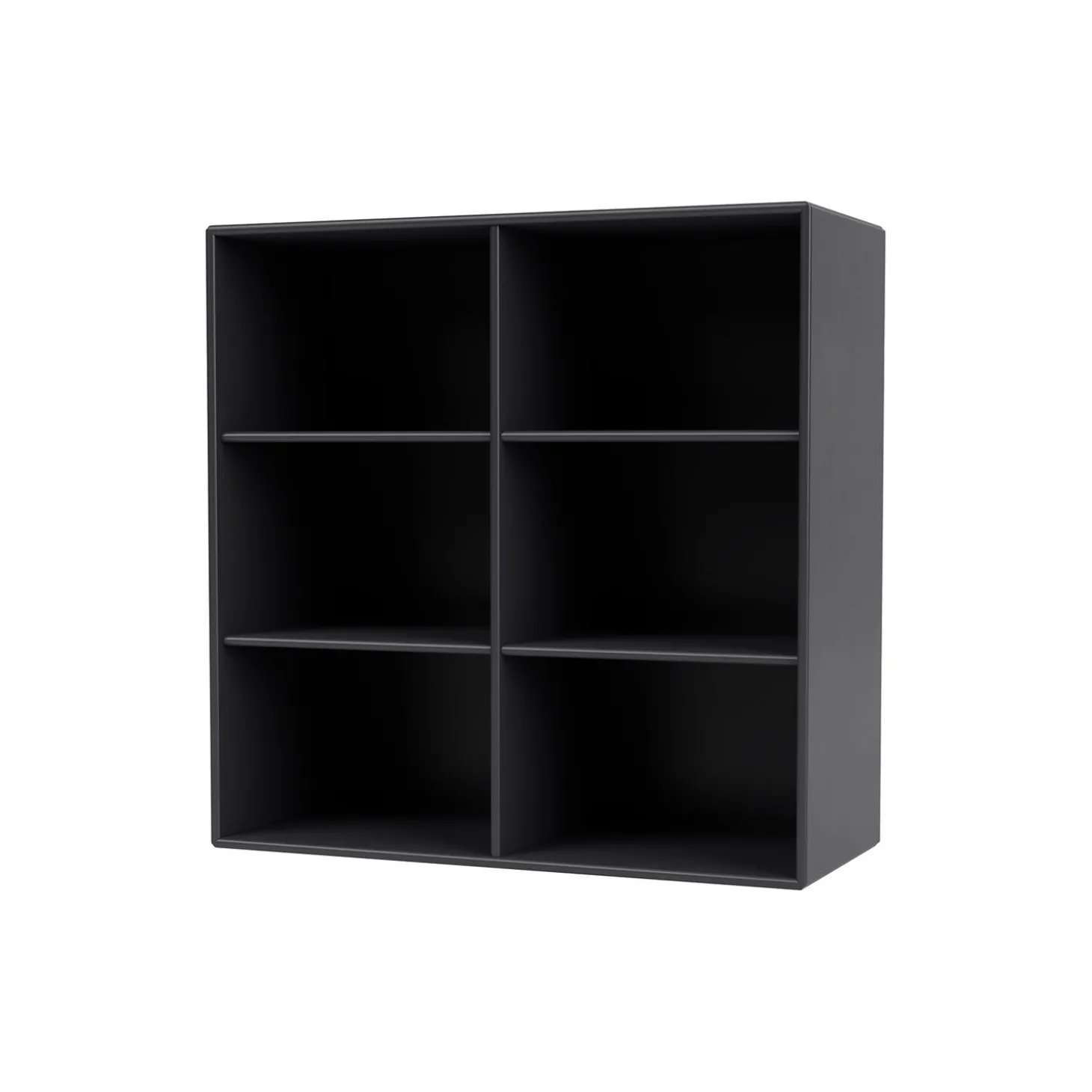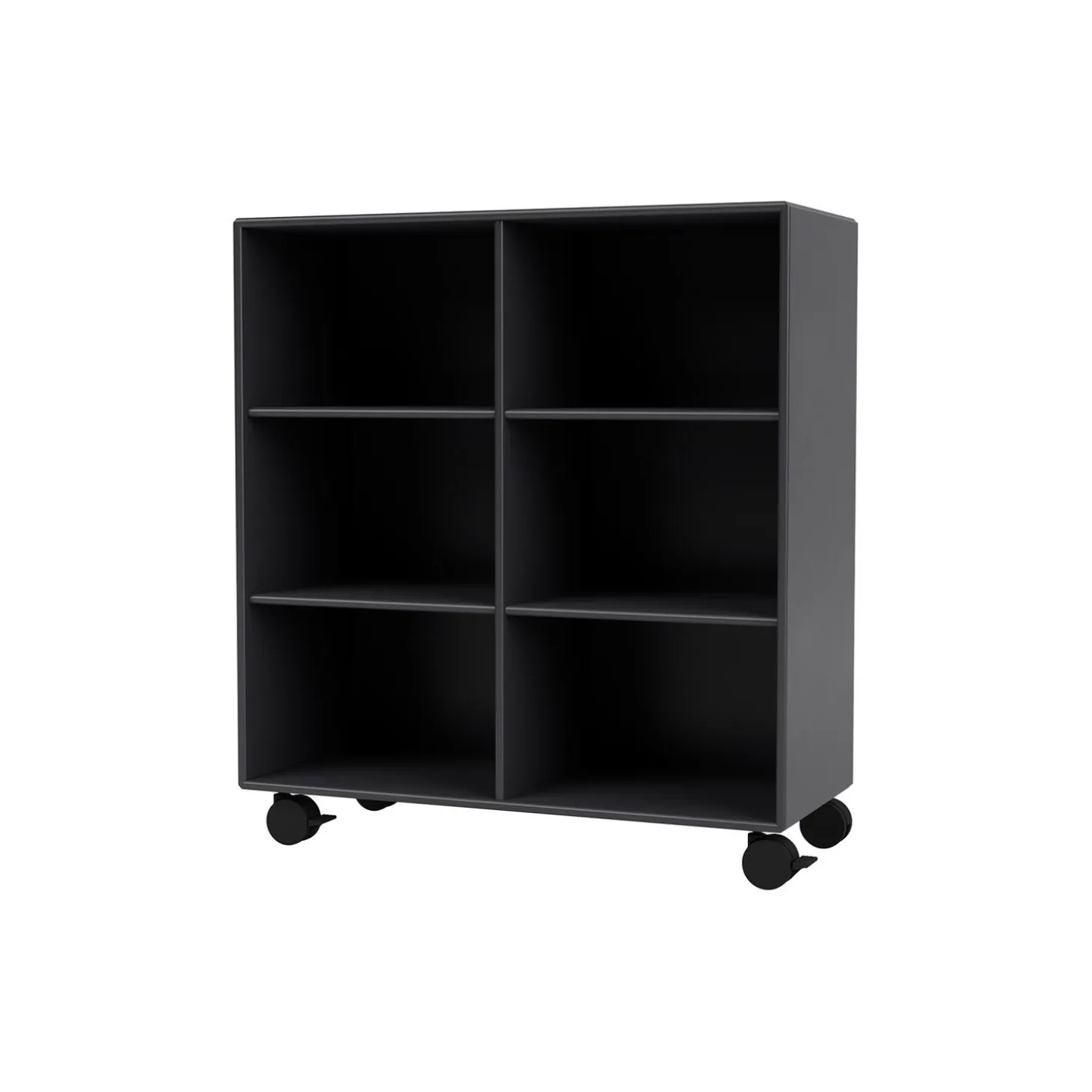 Montana 1113 reol med hjul i lakeret MDF fra Montana Furniture. Farve: 04 anthracite/black. Mål: H: 76,4 x B: 69,6 x D: 30 cm. Design: Peter J. Lassen.
