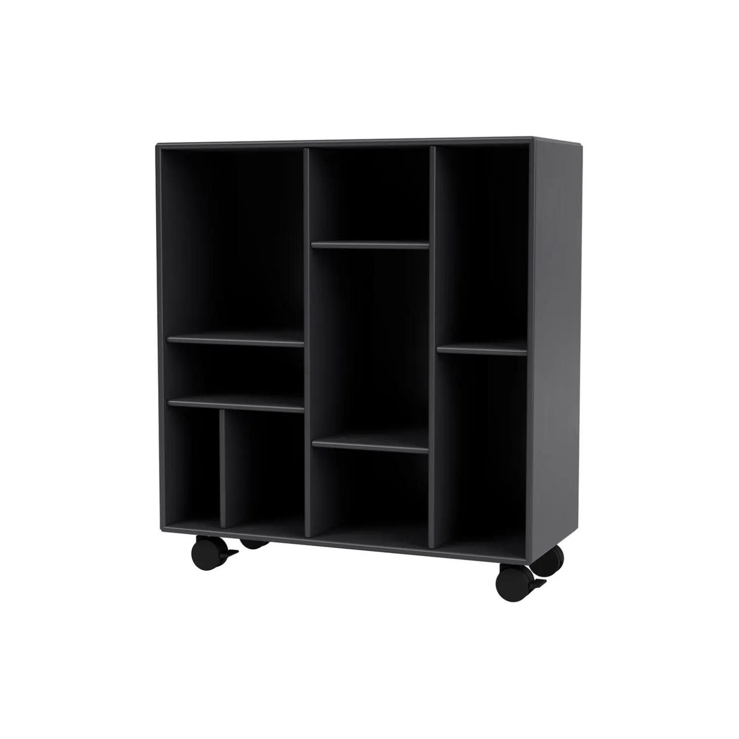 Montana 1613 reol med hjul i lakeret MDF fra Montana Furniture. Farve: 04 anthracite/black. Mål: H: 76,4 x B: 69,6 x D: 30 cm. Design: Peter J. Lassen.