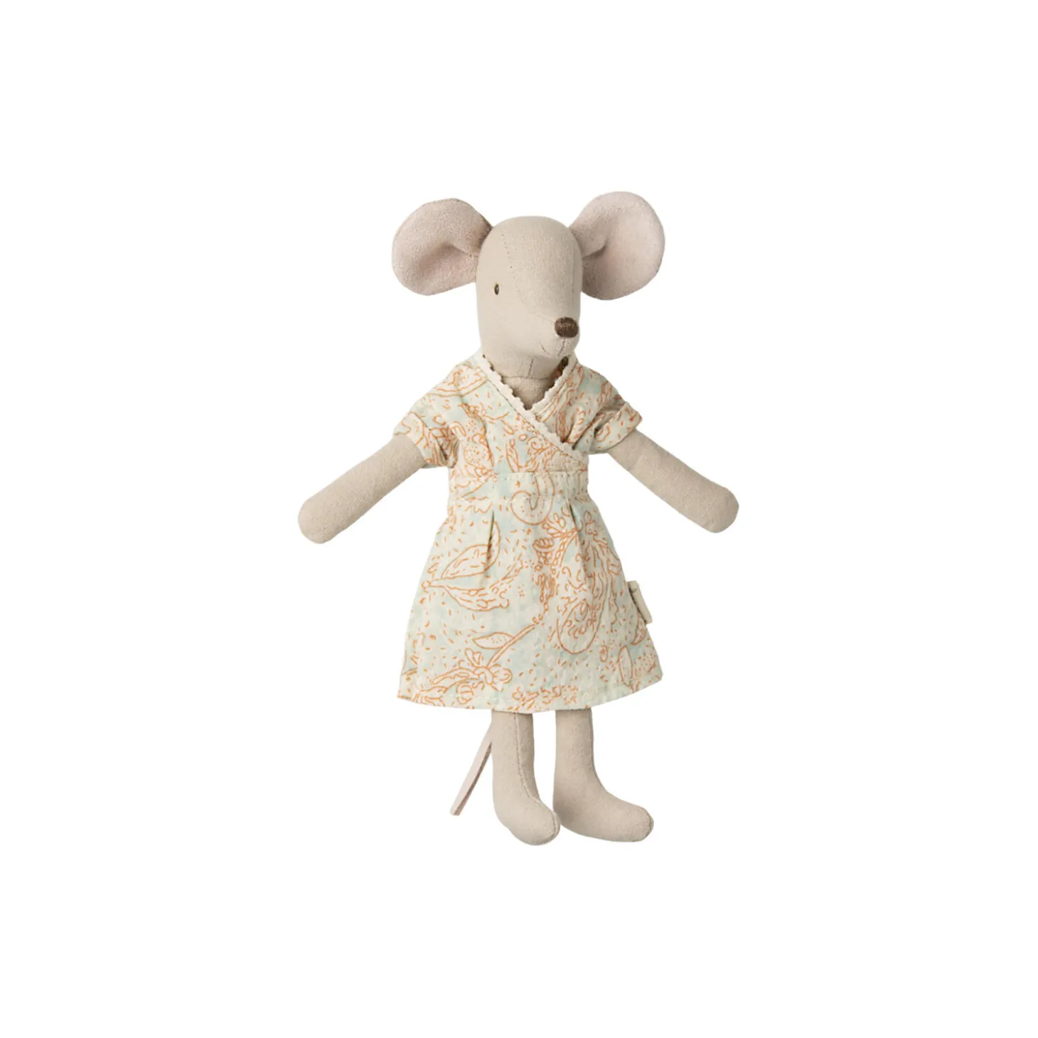 Et klassisk Maileg produkt; Mor mus i en let kjole. Denne mus passer til møbler og tilbehør i størrelse mus. Køb mere tøj separat. Tøj i størrelse mor/far passer til denne mus.